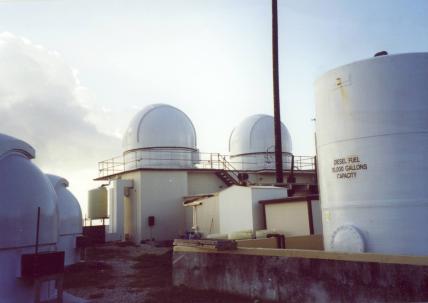 radar (red and white tower with radome) and optical telescope sensors. The cleared