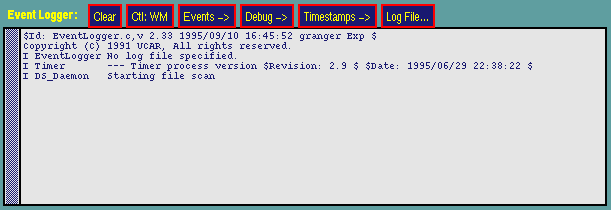The other large icons at the bottom of the main window each represent a directory containing any number of data files. If that directory is currently enabled, the icon will appear blue and yellow, and if the directory is disabled, the icon will appear gray and white. The data file that is displayed from each enabled directory is the most recent one found in the directory before the reference time (shown in the top left corner of the window). IMPORTANT: If the time of this most recent file in the directory is more than 30 minutes before the reference time, the corresponding icon is highlighted in red to alert the user.