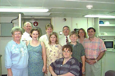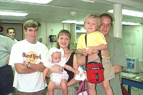 Mr. James Morgan, Jr. (on left) from Richland Northeast High School in Columbia, SC, came to see the RONALD H. BROWN with his family, Mimi, Win, Mrs. Marian and Mr. James Morgan, Sr.