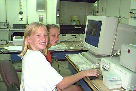 Tracey and Alma Brown with Dr. Sandra Yuter in the computer lab