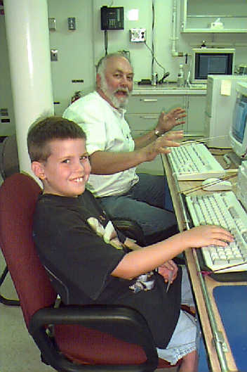 Senator Hollings, doing a television interview in the computer lab aboard