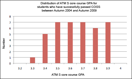 Evaluation by the COGS will take into account the student's research potential and academic record. The evaluation of the academic record will be based mainly on the level of difficulty and breadth of the courses taken and the grades earned in those courses, with particular emphasis on the required atmospheric sciences core courses. The COGS has no set threshold for a minimum GPA in core ATMS courses, but students can consult the distribution of GPAs of students who have successfully passed COGS. The research potential will be evaluated from the M.S. thesis or any manuscript submitted. In addition, for options (2) and (3), COGS will be strongly influenced by the M.S. supervisory committee's written evaluation of the thesis or manuscript, and the committee’s recommendation as to whether it constitutes sufficient evidence of research capability to qualify the student for the PhD program. This recommendation letter should describe in detail the ideas in the thesis or paper that came from the student. The letter should also give examples that demonstrate creativity, independent thought, initiative, and critical thinking in the student’s work. The COGS will also take into account the elapsed time during which the research was carried out. The COGS may solicit comments concerning the student’s academic or research performance from individual departmental faculty members. In the event of a negative decision, the COGS will consider one subsequent request for reevaluation provided that the second request is made before exceeding the time limitation described below.