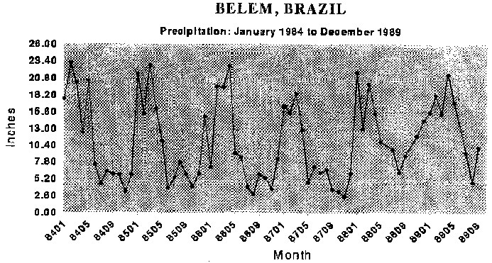 a drought zone. While Belem gets dramatically high and low rainfall due