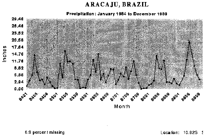 rainfall." The Aracaju is drier than Belem or Manuas because it lies in