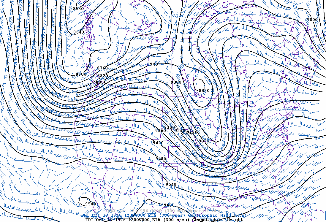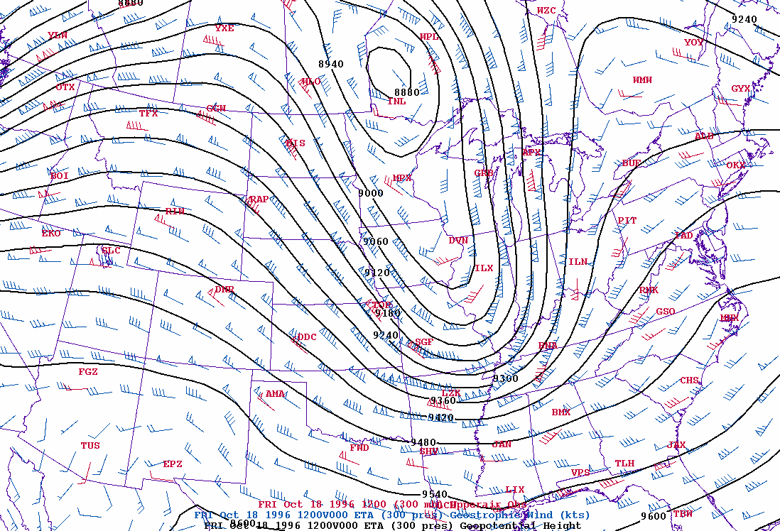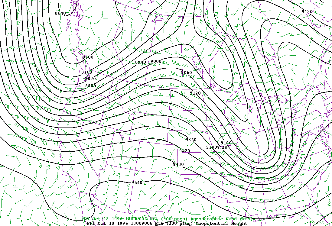 heights and geostrophic winds 300 mb