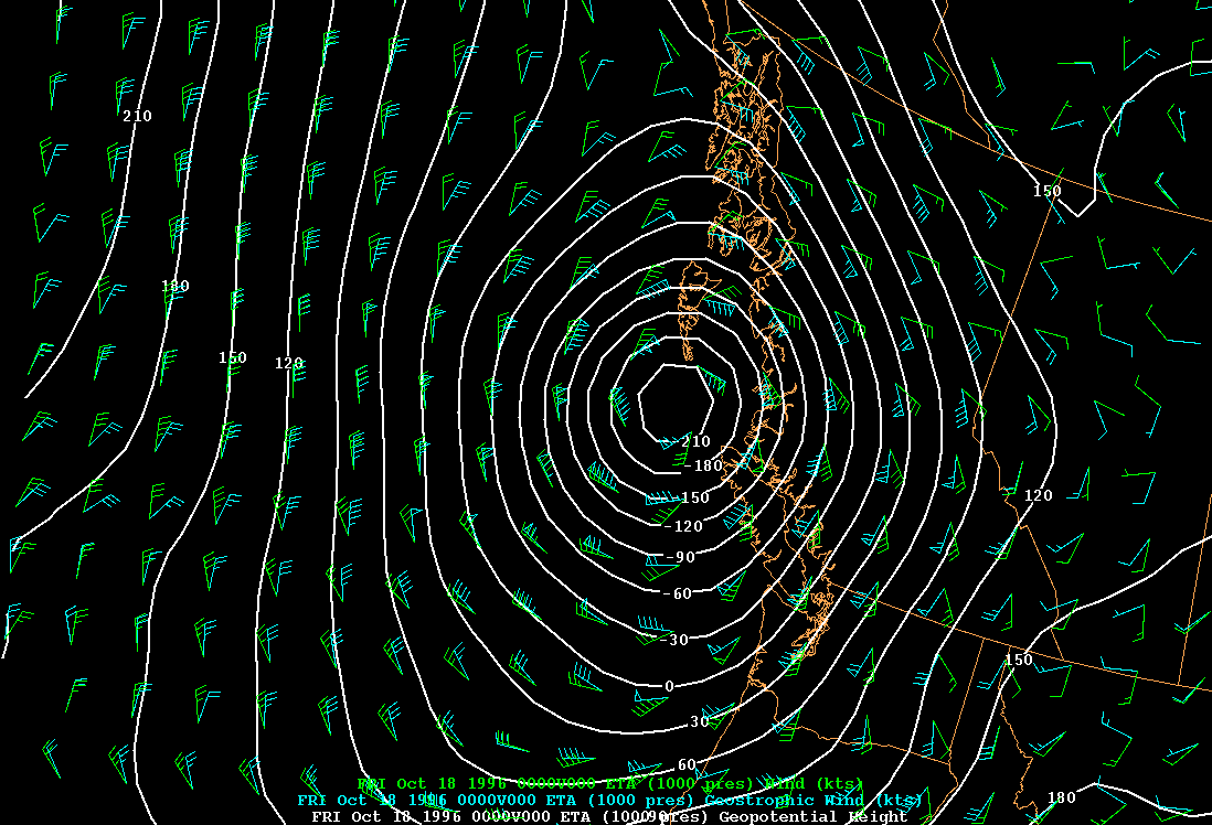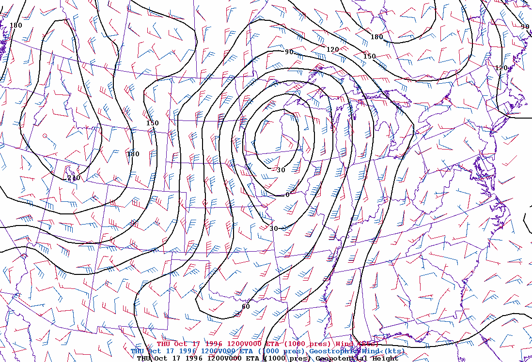 mb heights, geostrophic and observed winds