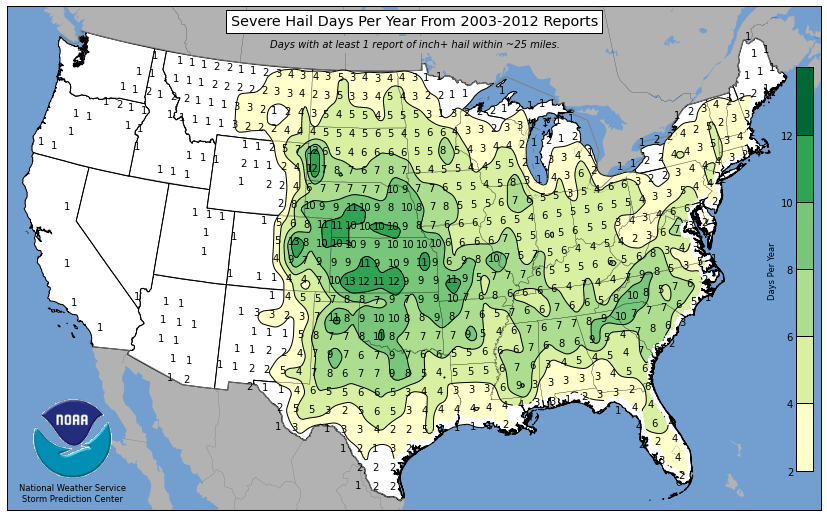 - Fig. 10.2 Avrg annual number of days with environments favorable for tornadic SS