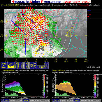 - Multiple Doppler: image with one horizontal cross-section (containing flight tracks, multiple-doppler fields, radar data, and geography) and two vertical cross-sections (containing multiple-doppler fields, radar data and terrain).