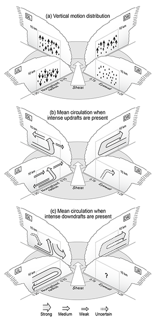 DeHart, J. C., R. A. Houze, Jr., and R. F. Rogers, 2014: Quadrant distribution of tropical cyclone inner-core kinematics in relation to environmental shear. J. Atmos. Sci., 71, 2713–2732.