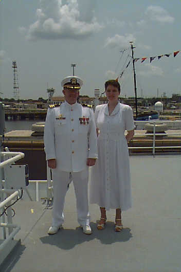 Commander David H. Peterson and Dr. Sandra Yuter on commissioning day.