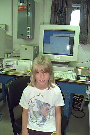 Ms. Jessica Piness is working at the computer in the science lab on the RONALD H. BROWN.