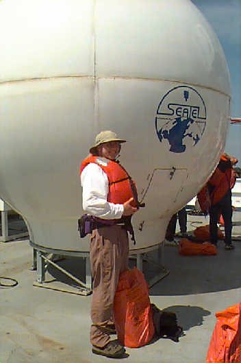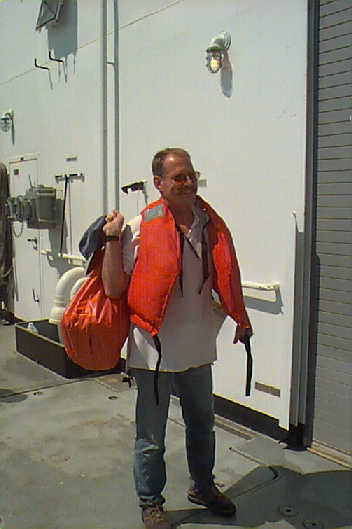 Survey Technician Jonathan Shannahoff is all geared up for this abandon ship drill.