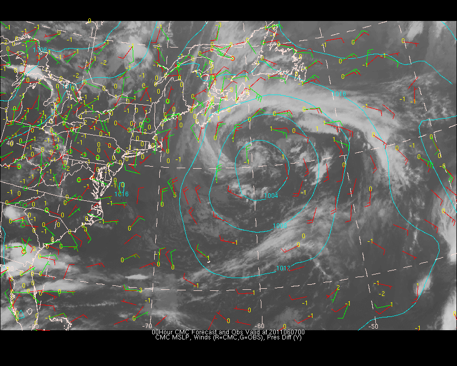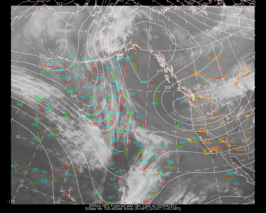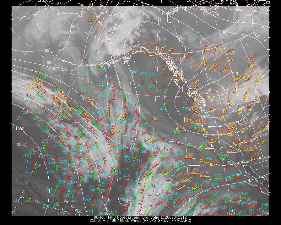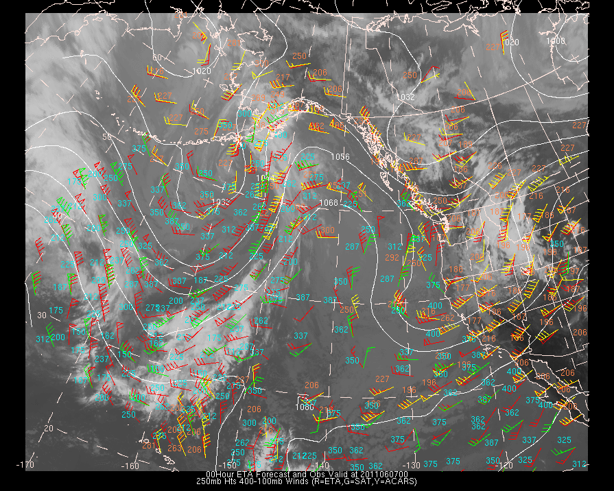 Vector Differences between model and ACARS and/or Cloud track/water vapor winds