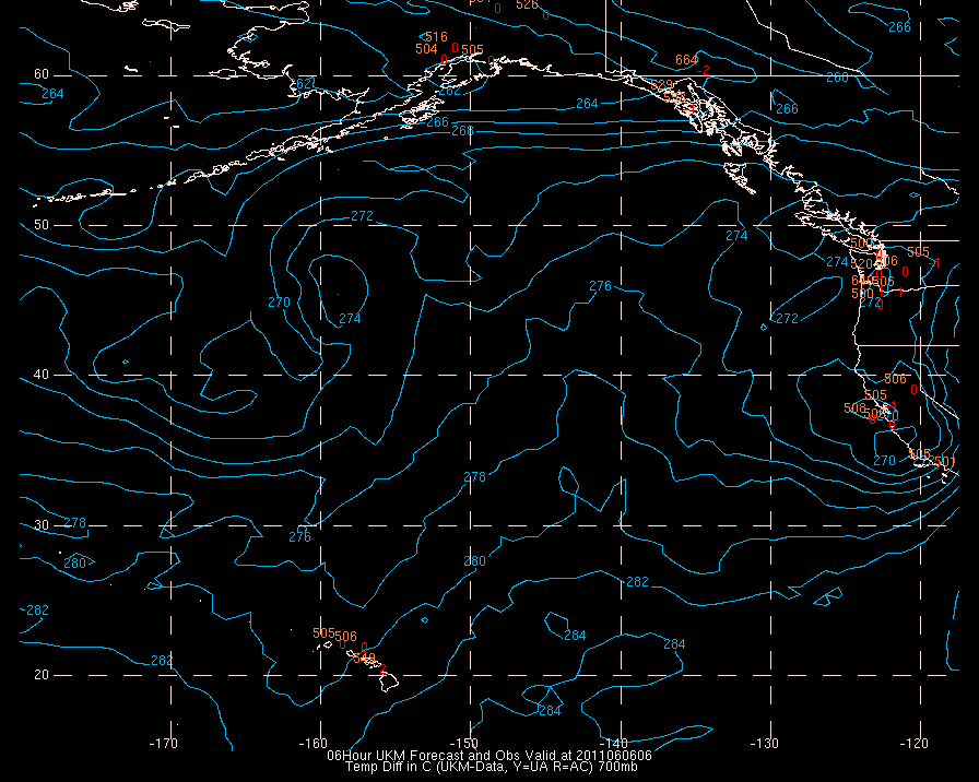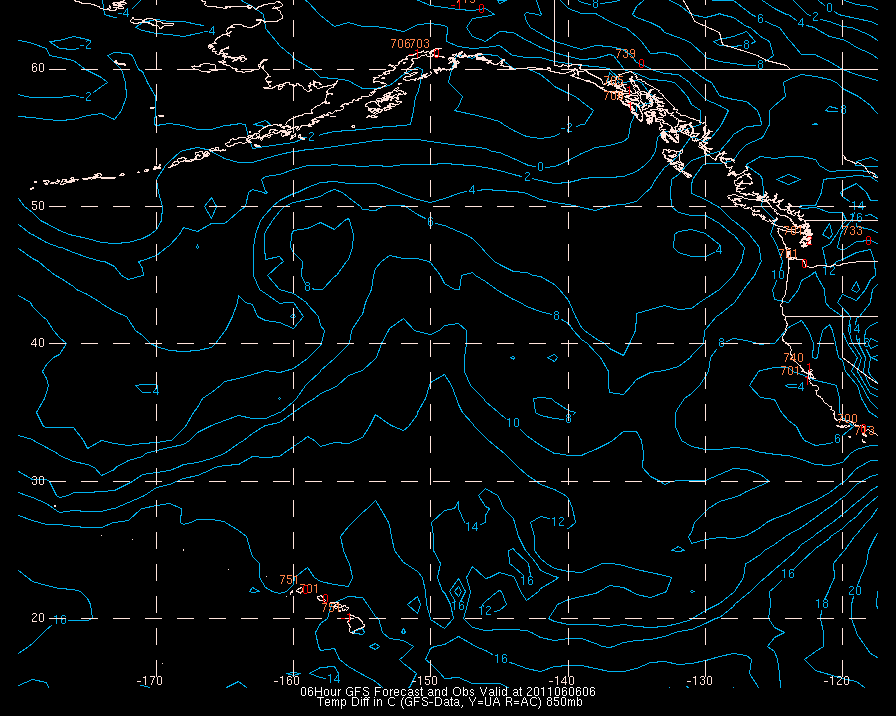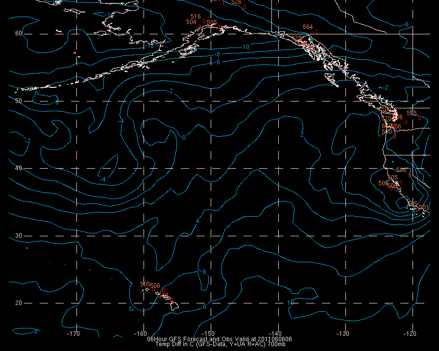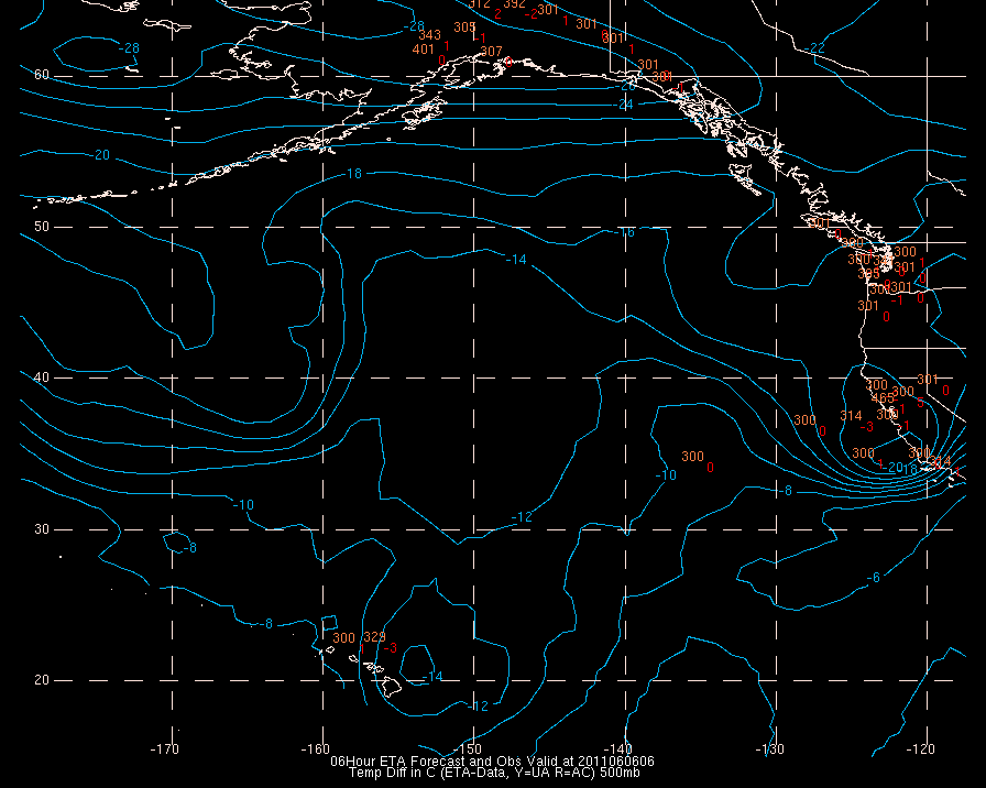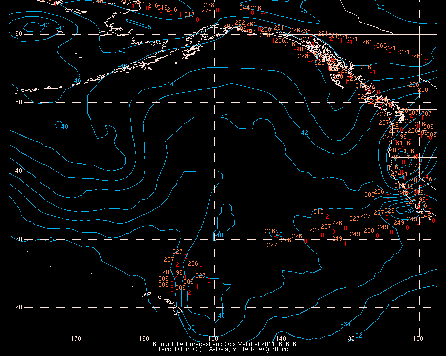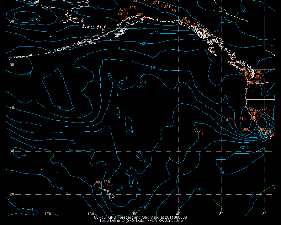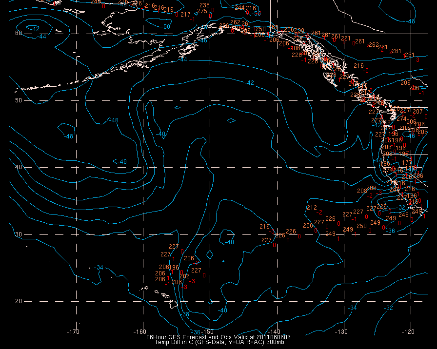 Temperature differences between observations (acars, and/or upper air) and model temps:
