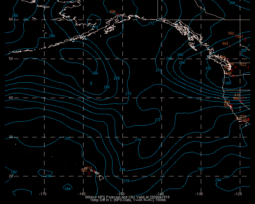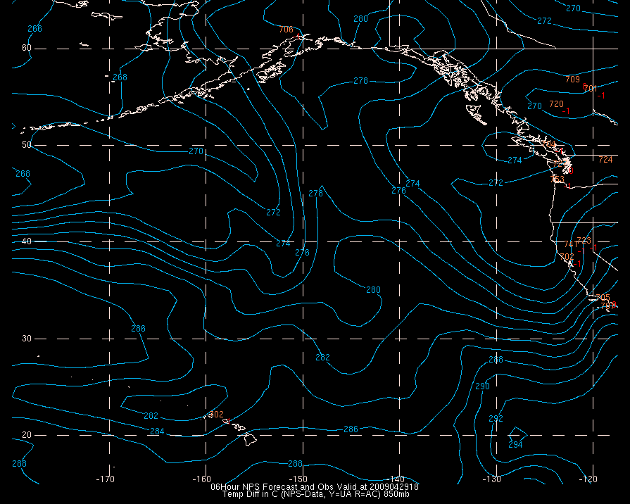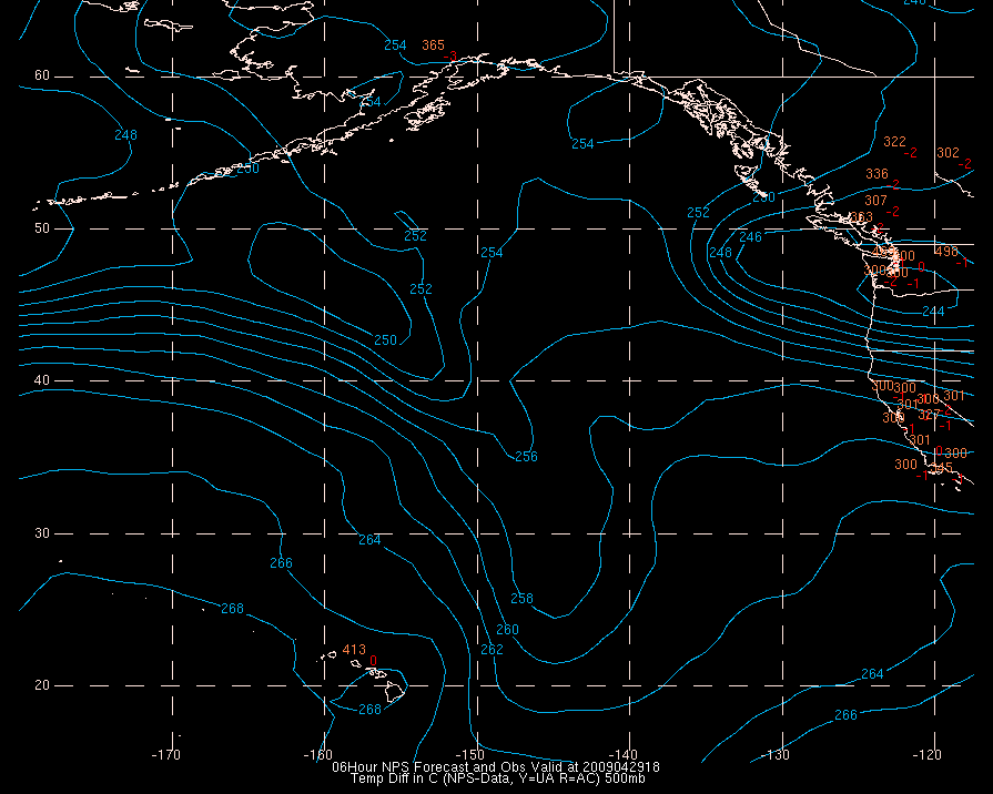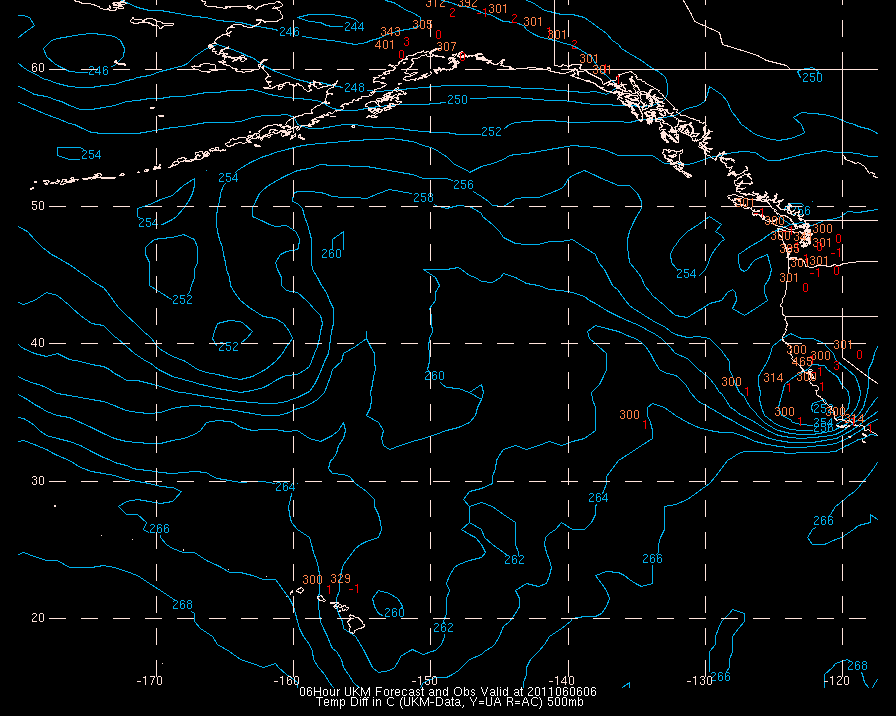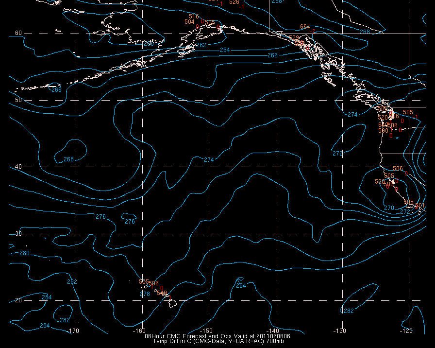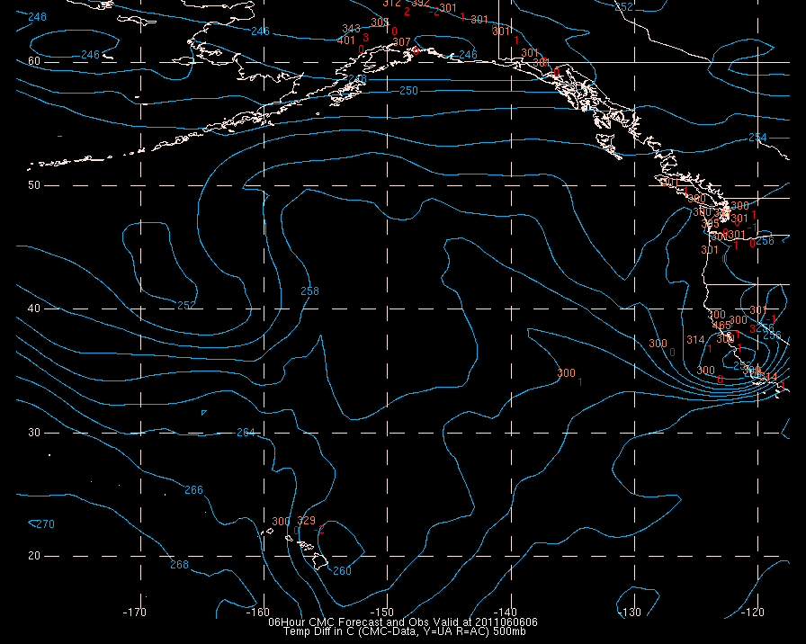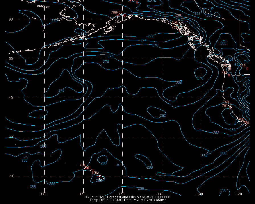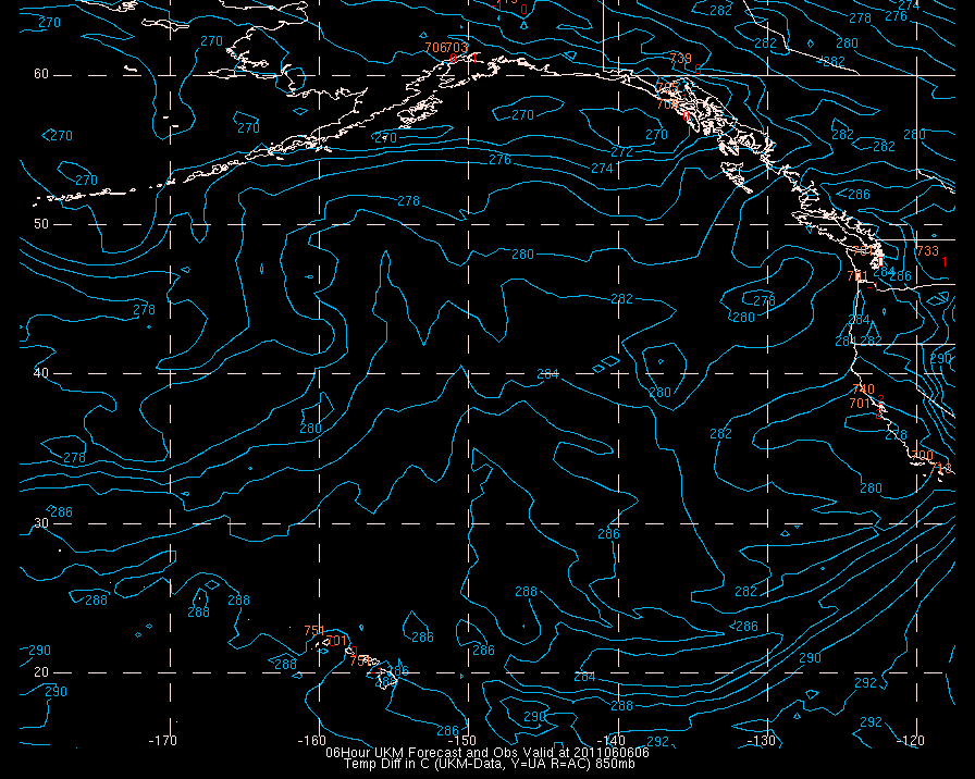Temperature differences between observations (acars, and/or upper air) and model temps: