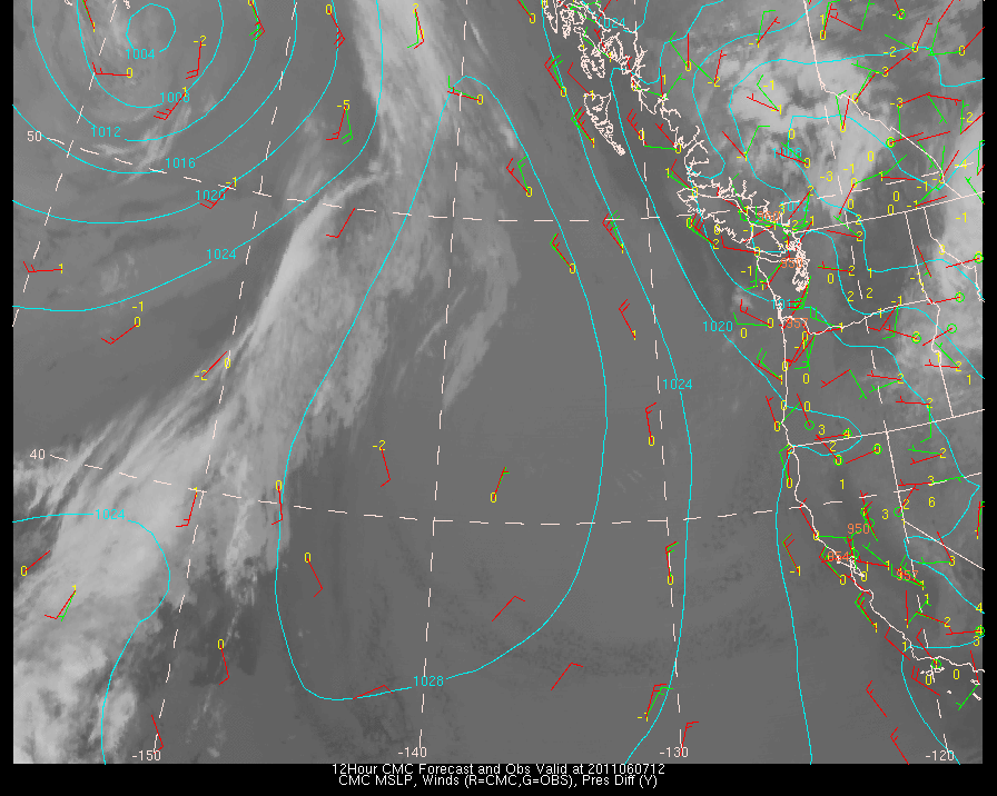 Vector Differences between model and ACARS and/or Cloud track/water vapor winds