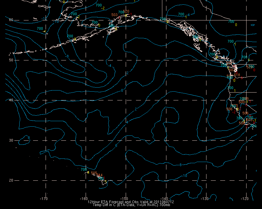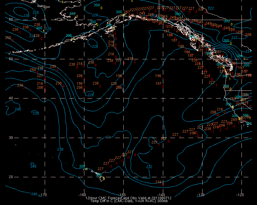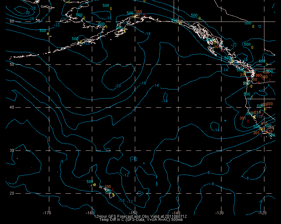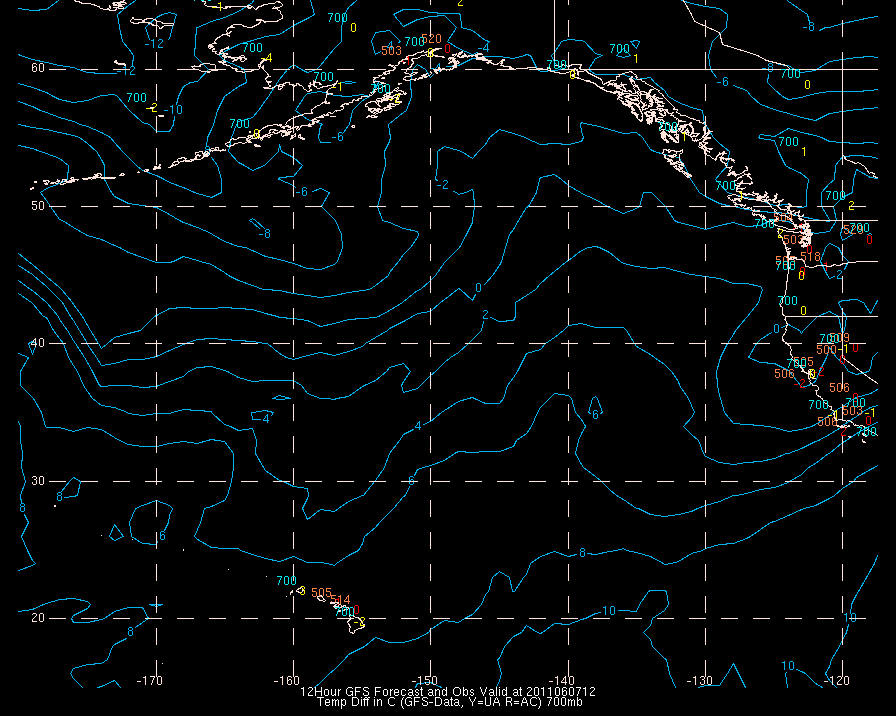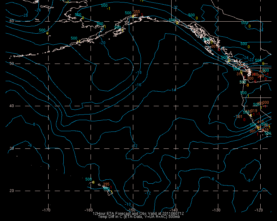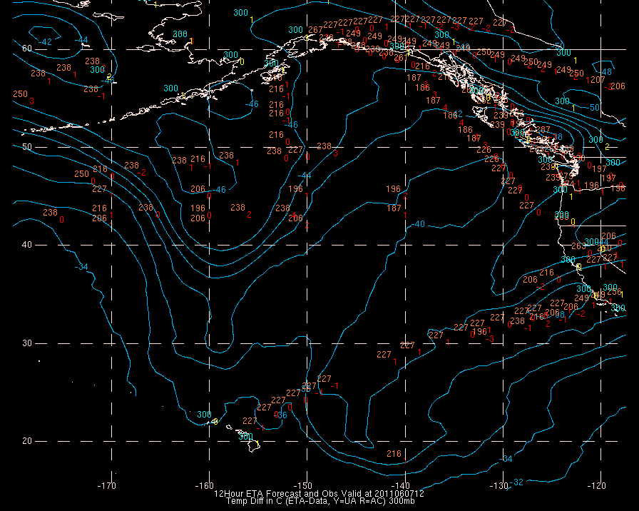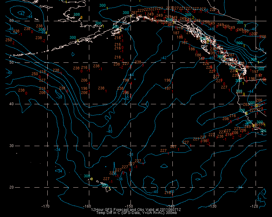 Temperature differences between observations (acars, and/or upper air) and model temps: