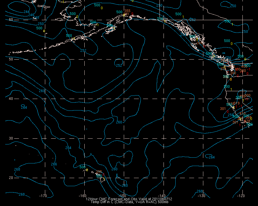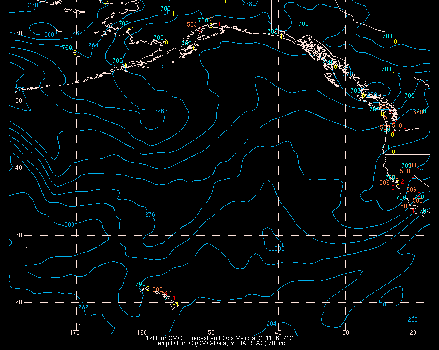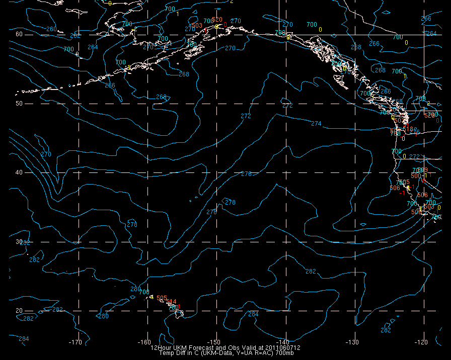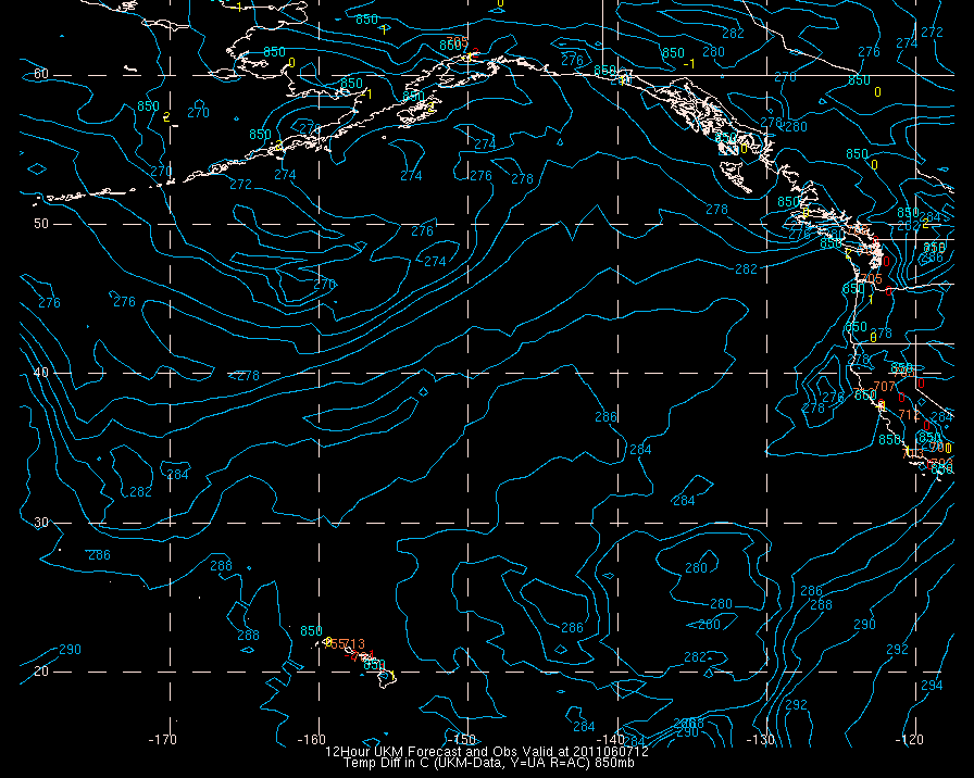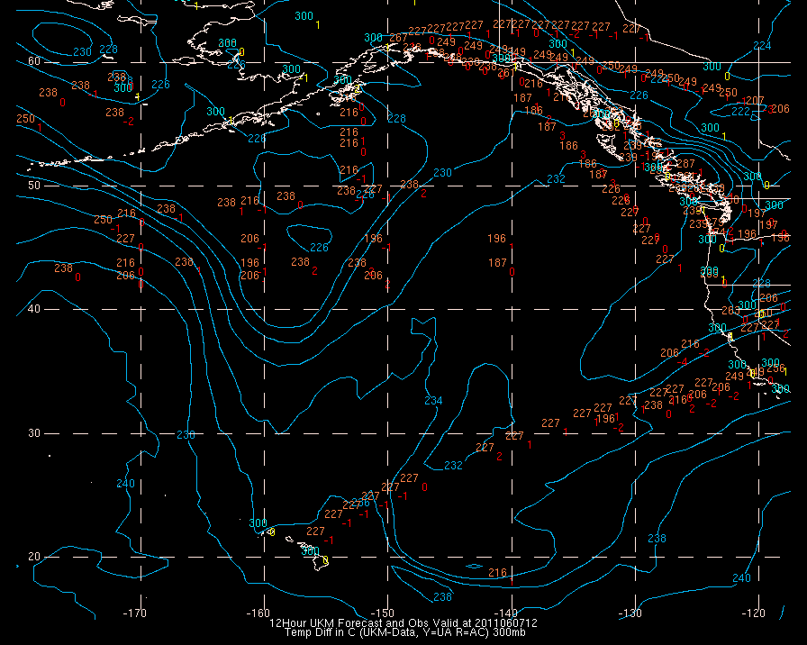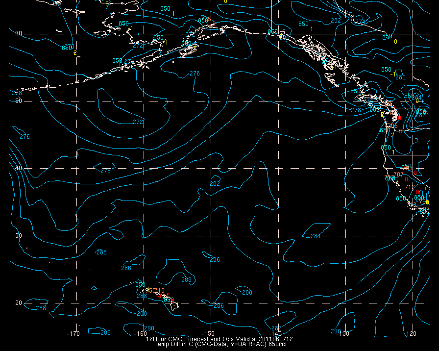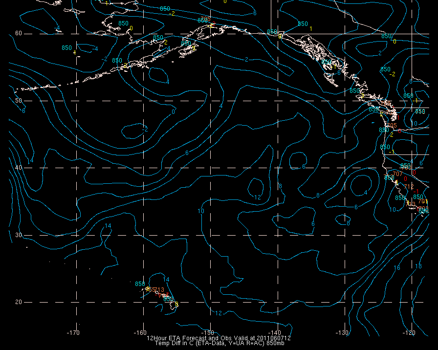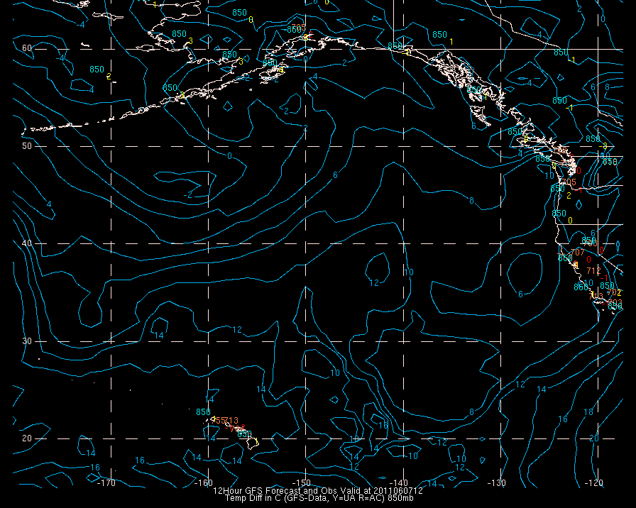 Temperature differences between observations (acars, and/or upper air) and model temps: