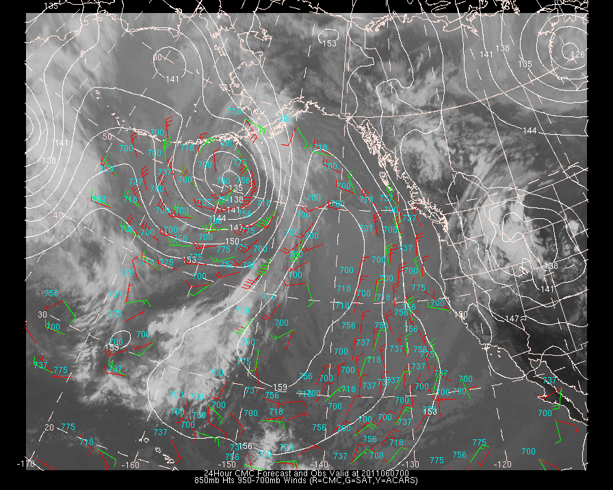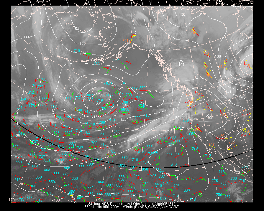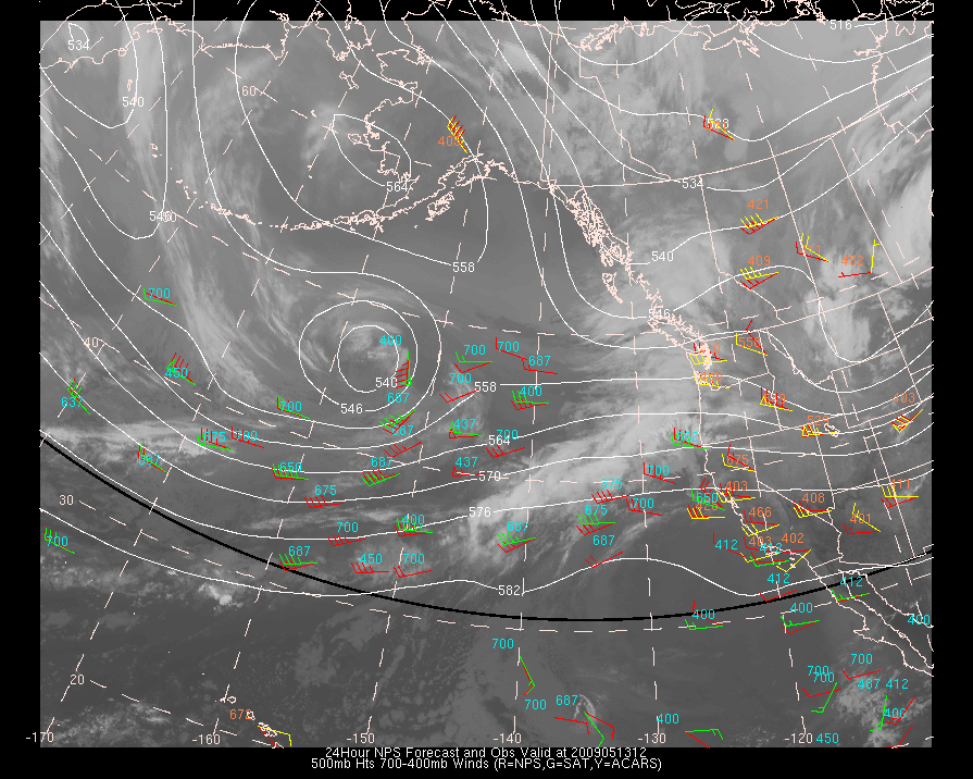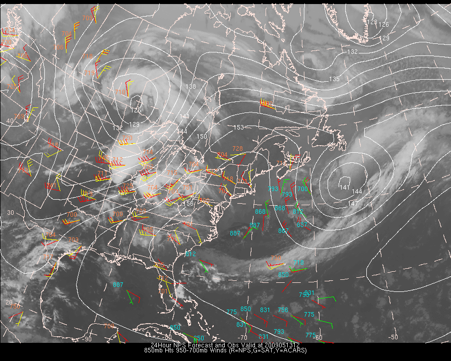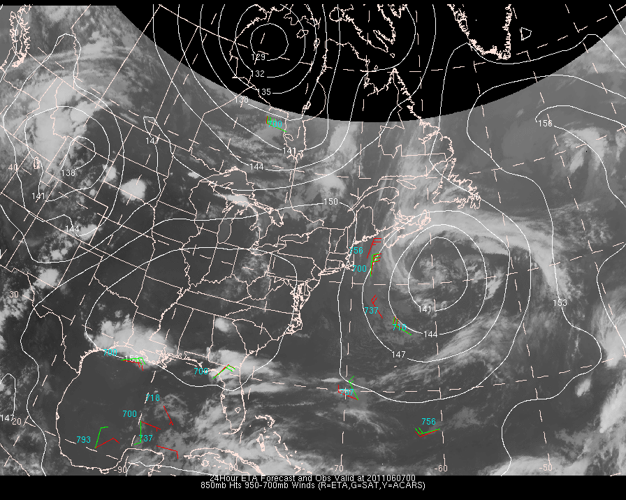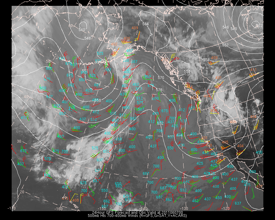 Vector Differences between model and ACARS and/or Cloud track/water vapor winds