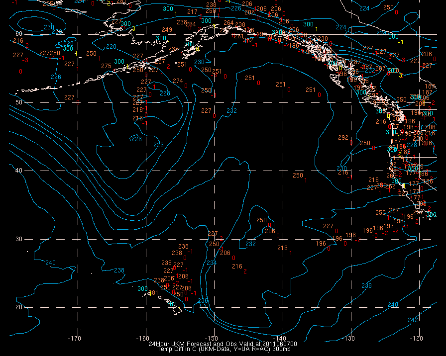 Temperature differences between observations (acars, and/or upper air) and model temps: