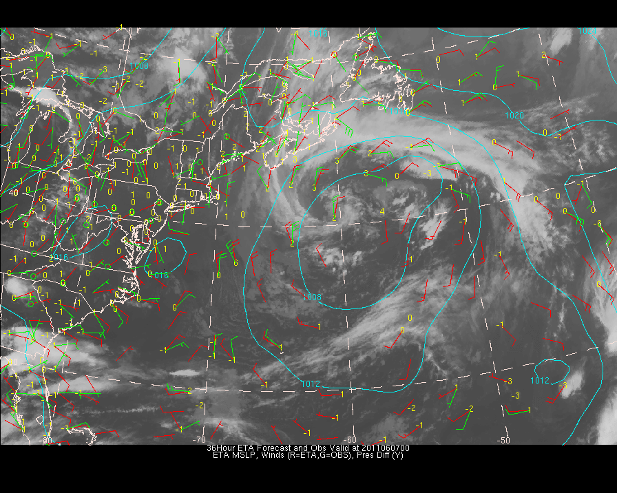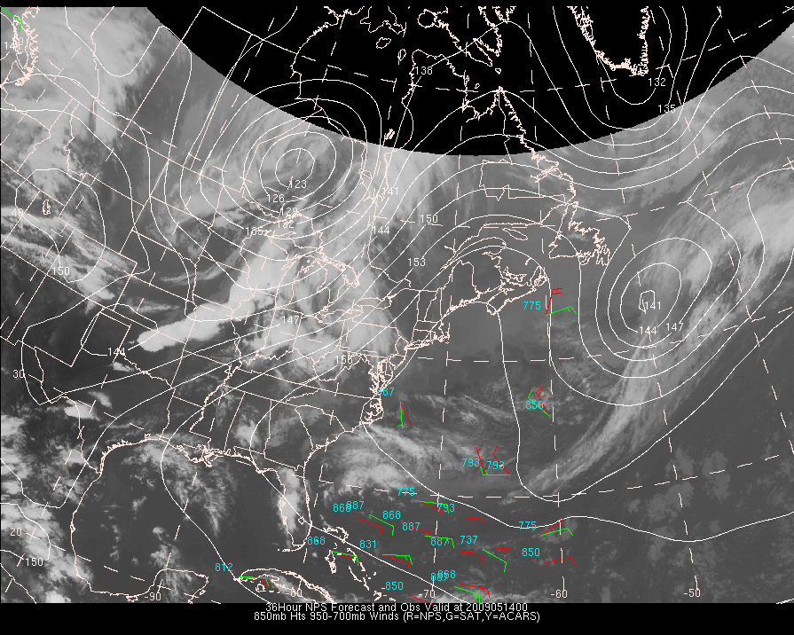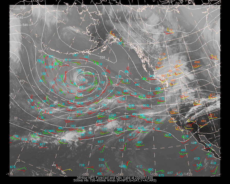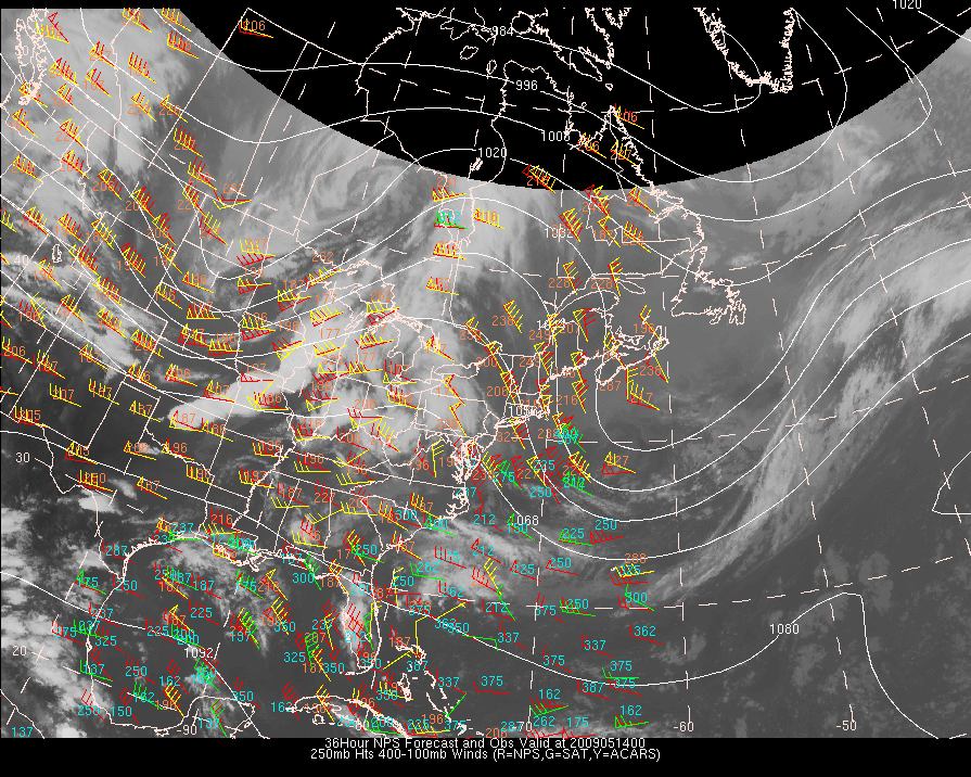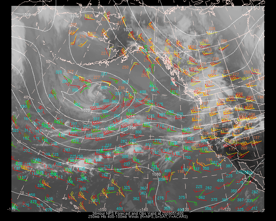 Vector Differences between model and ACARS and/or Cloud track/water vapor winds