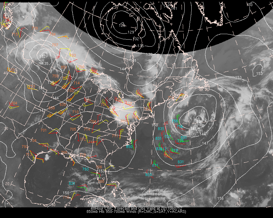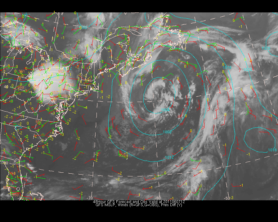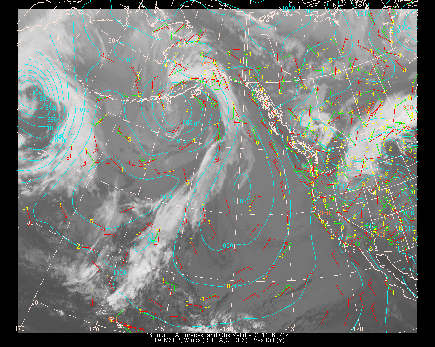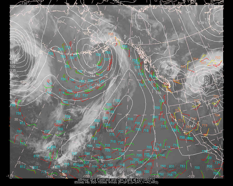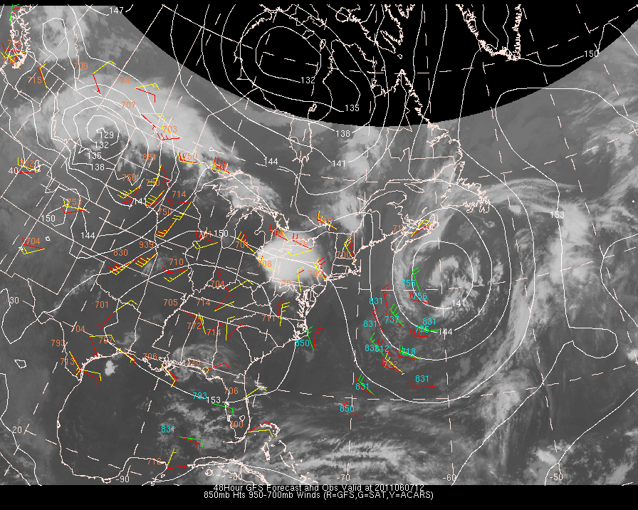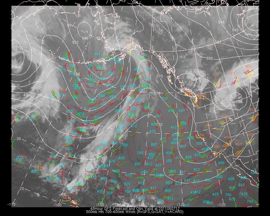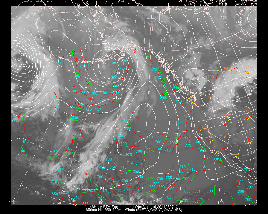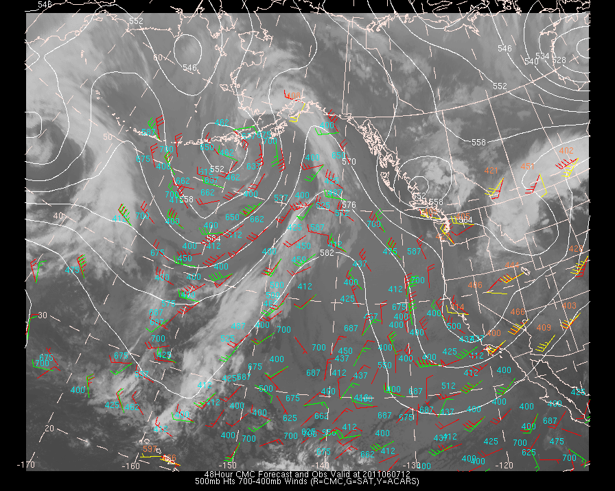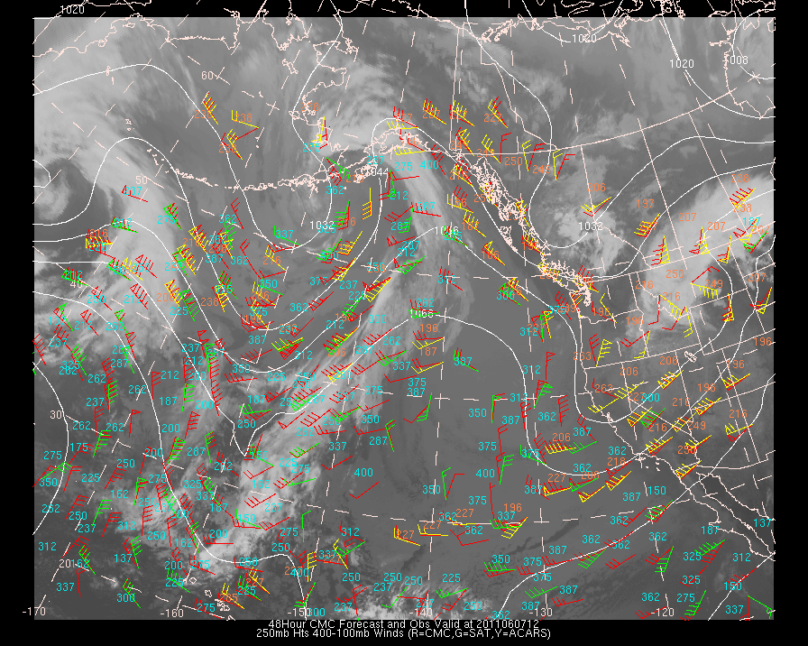 Vector Differences between model and ACARS and/or Cloud track/water vapor winds