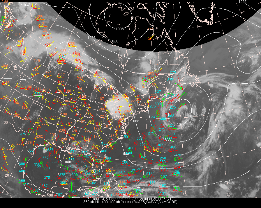 Vector Differences between model and ACARS and/or Cloud track/water vapor winds