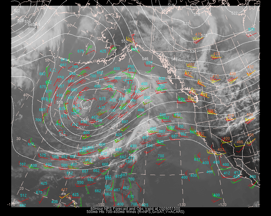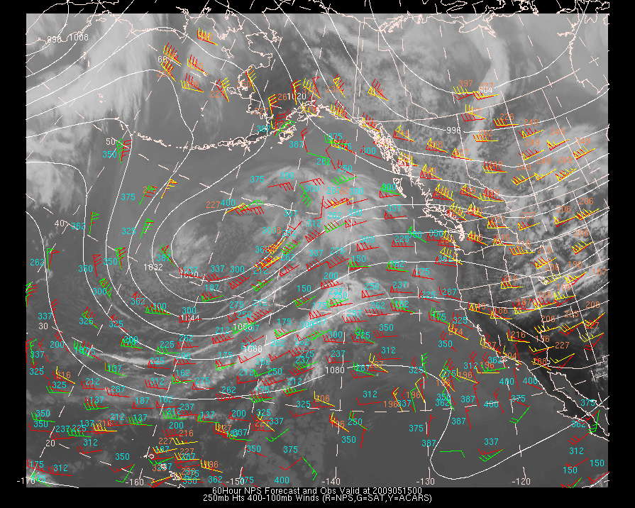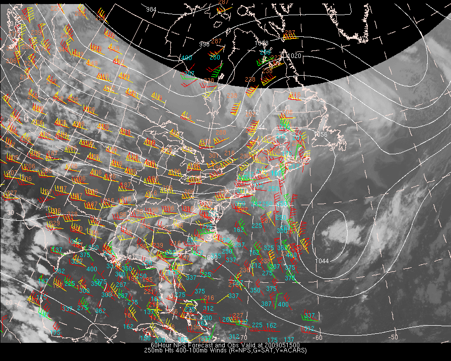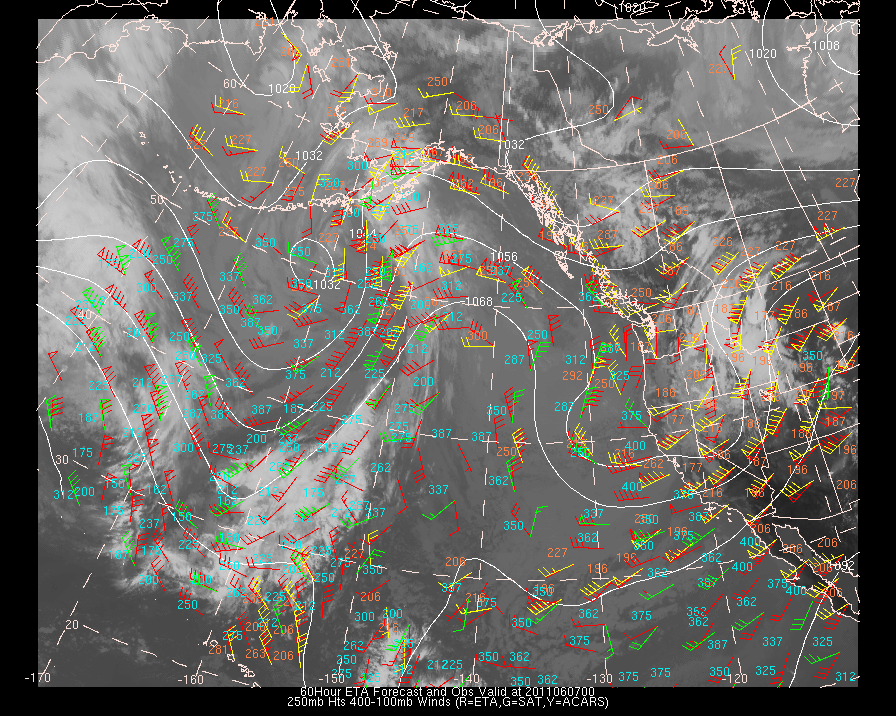 Vector Differences between model and ACARS and/or Cloud track/water vapor winds