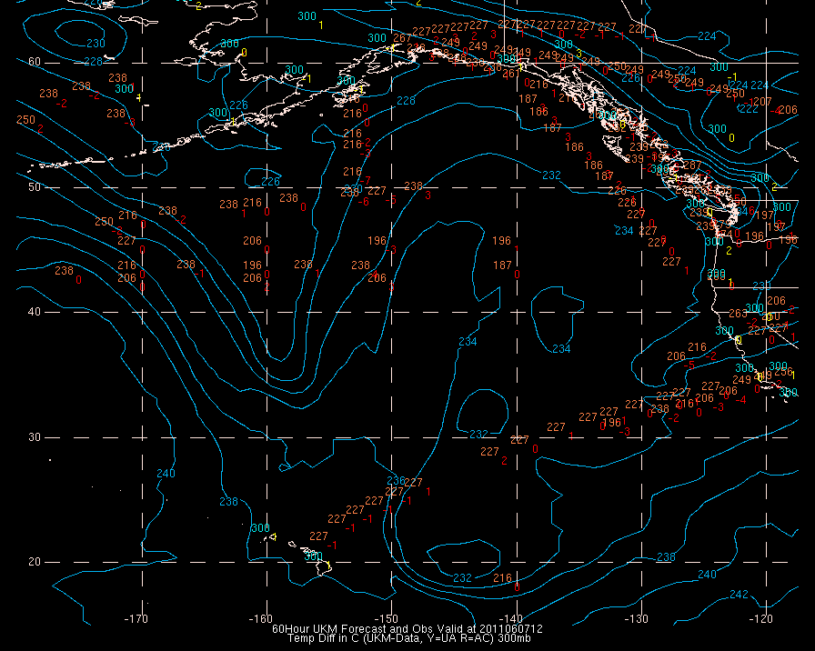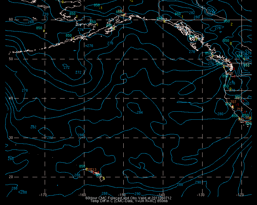 Temperature differences between observations (acars, and/or upper air) and model temps: