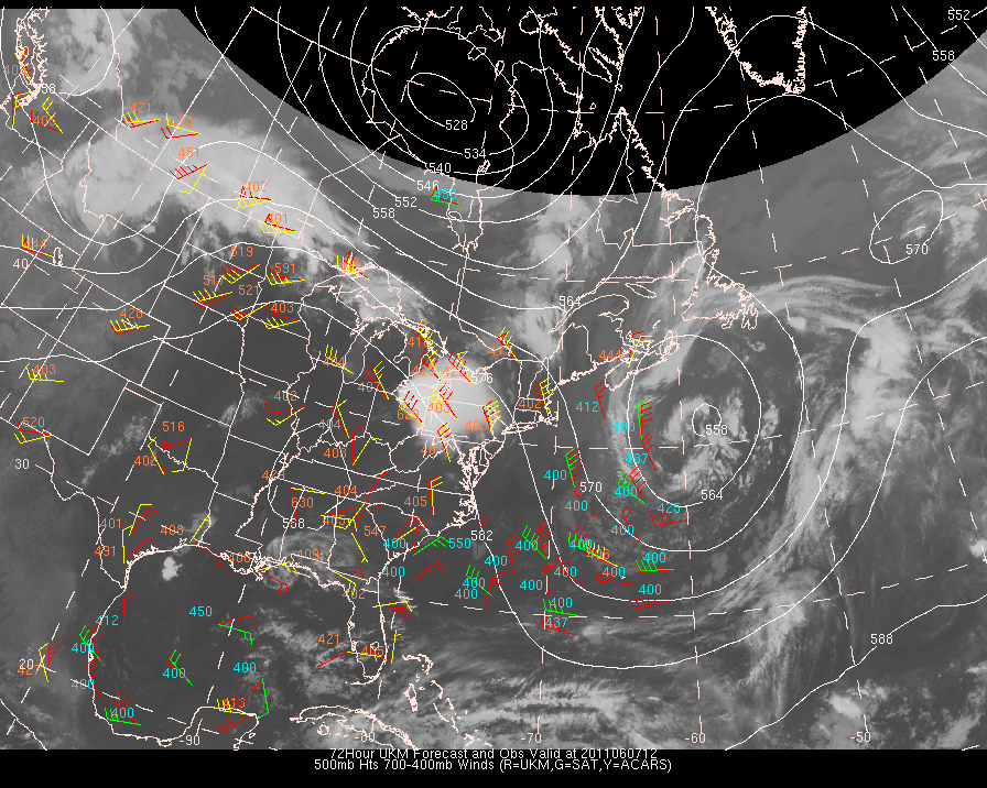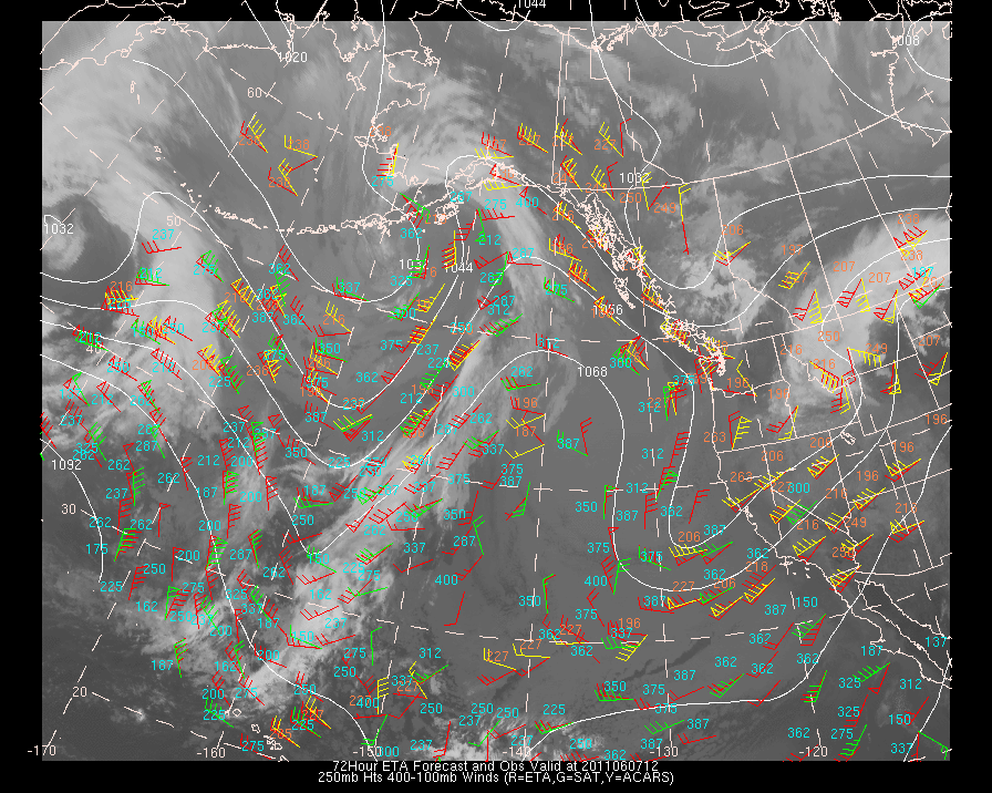 Vector Differences between model and ACARS and/or Cloud track/water vapor winds