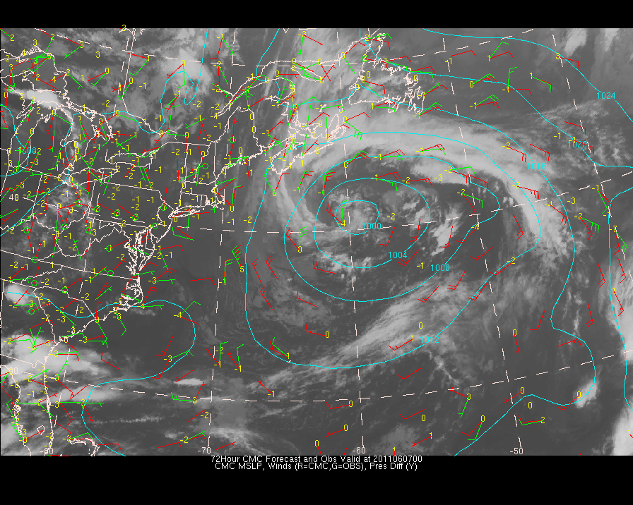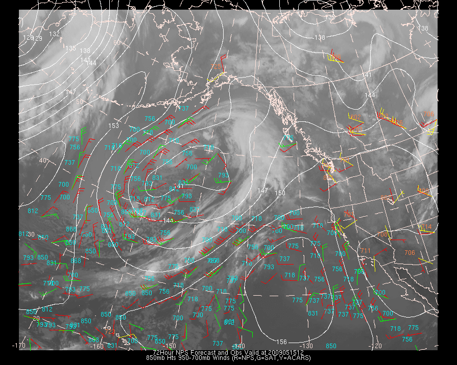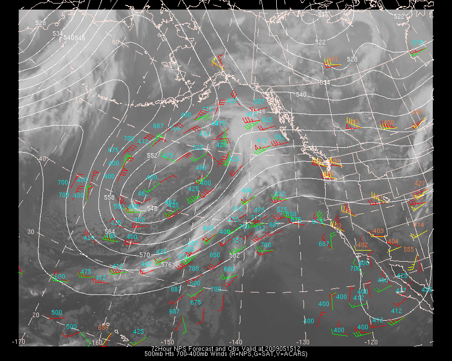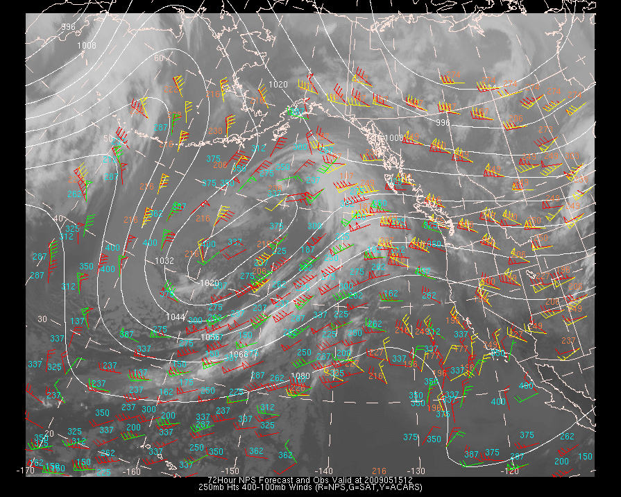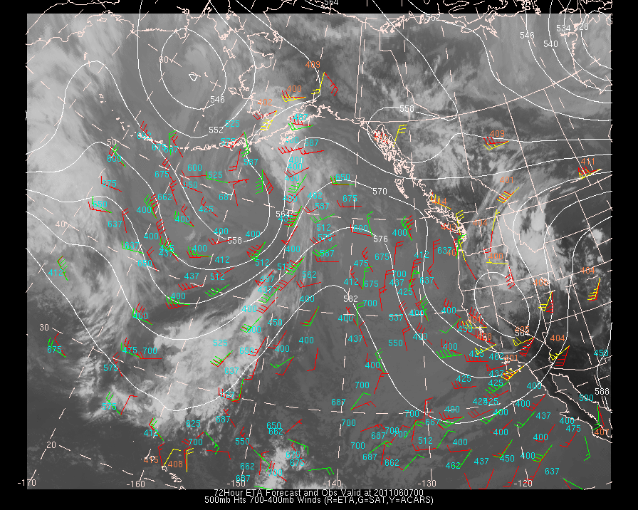 Vector Differences between model and ACARS and/or Cloud track/water vapor winds
