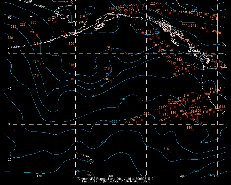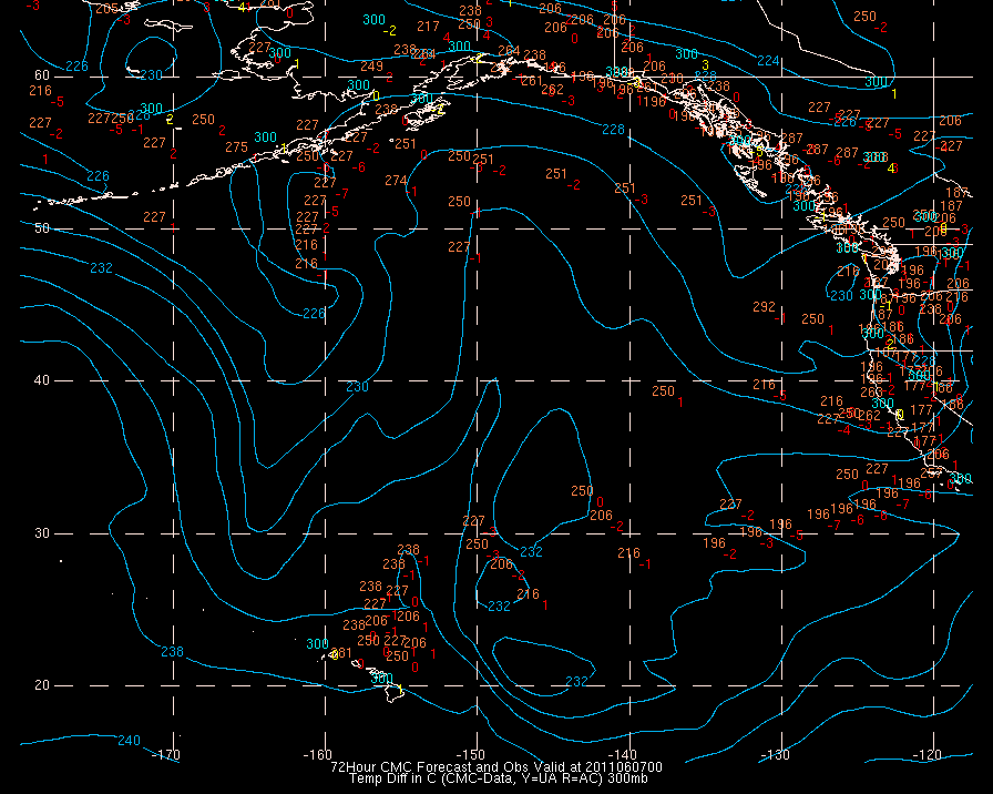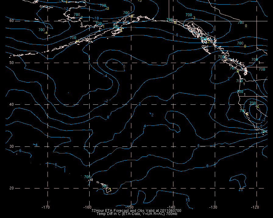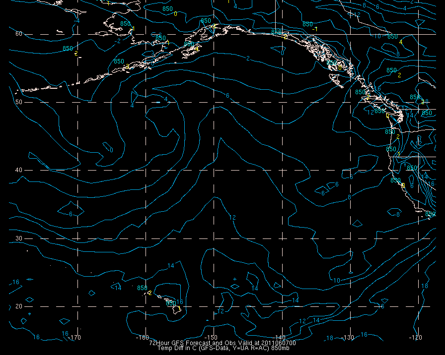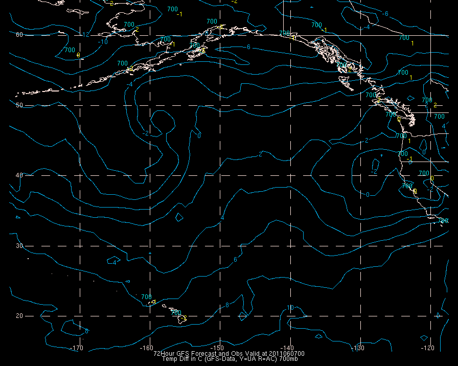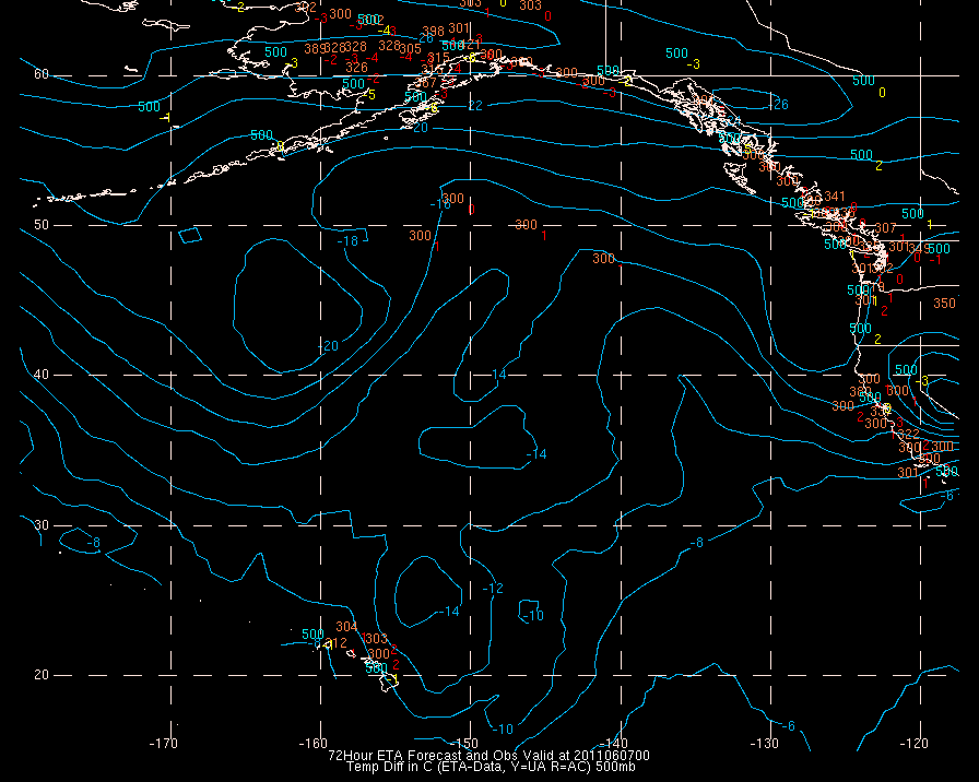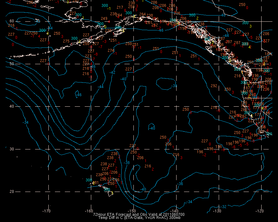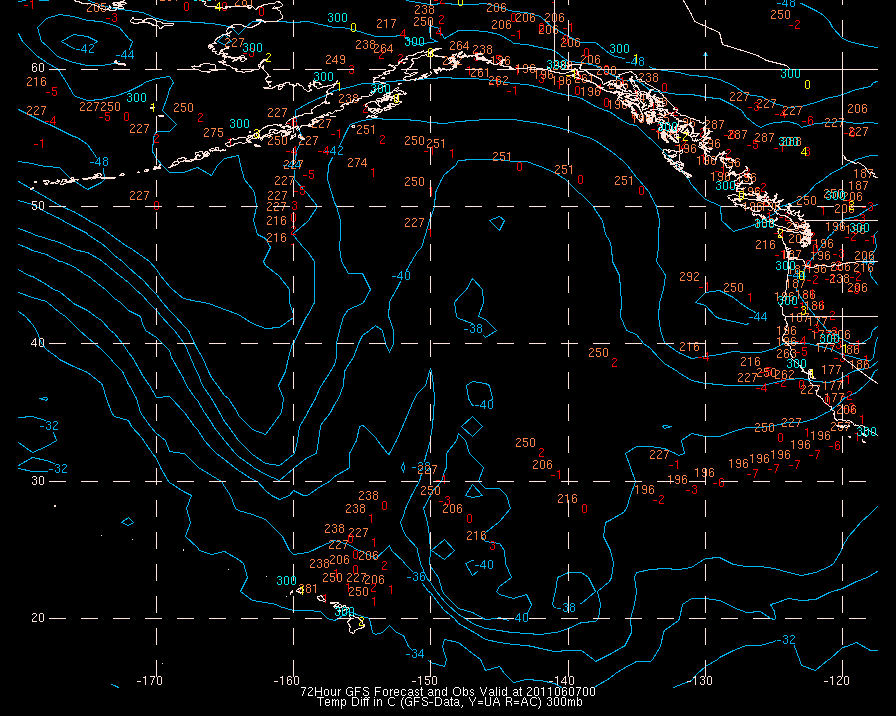 Temperature differences between observations (acars, and/or upper air) and model temps: