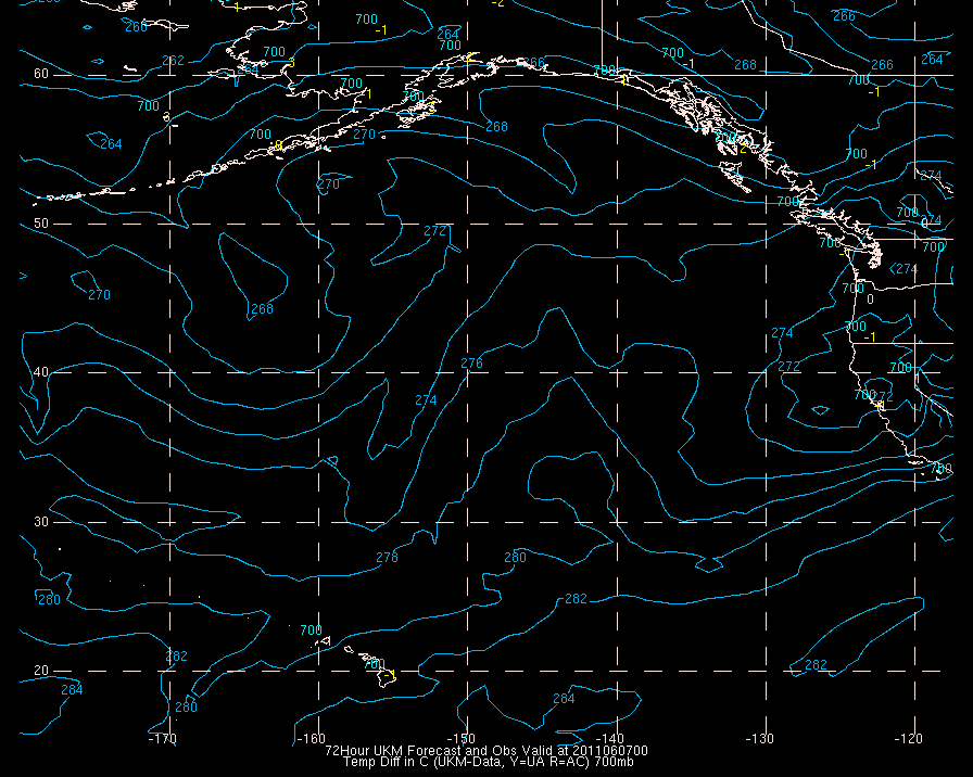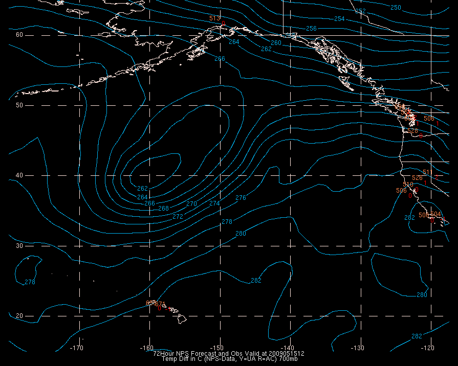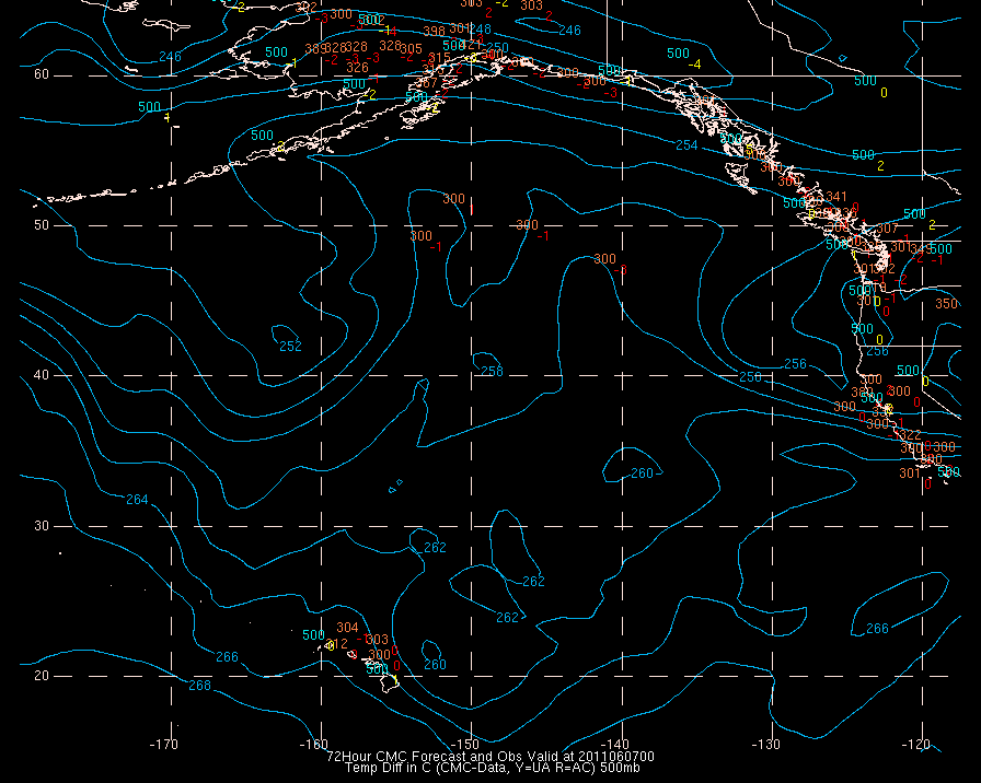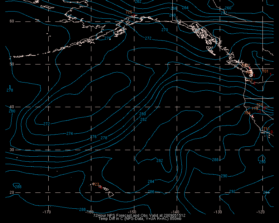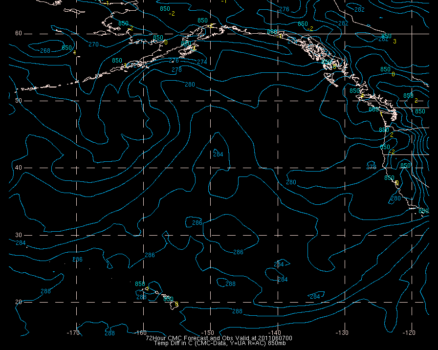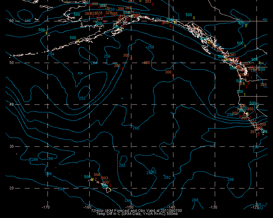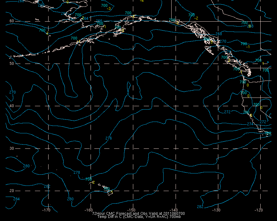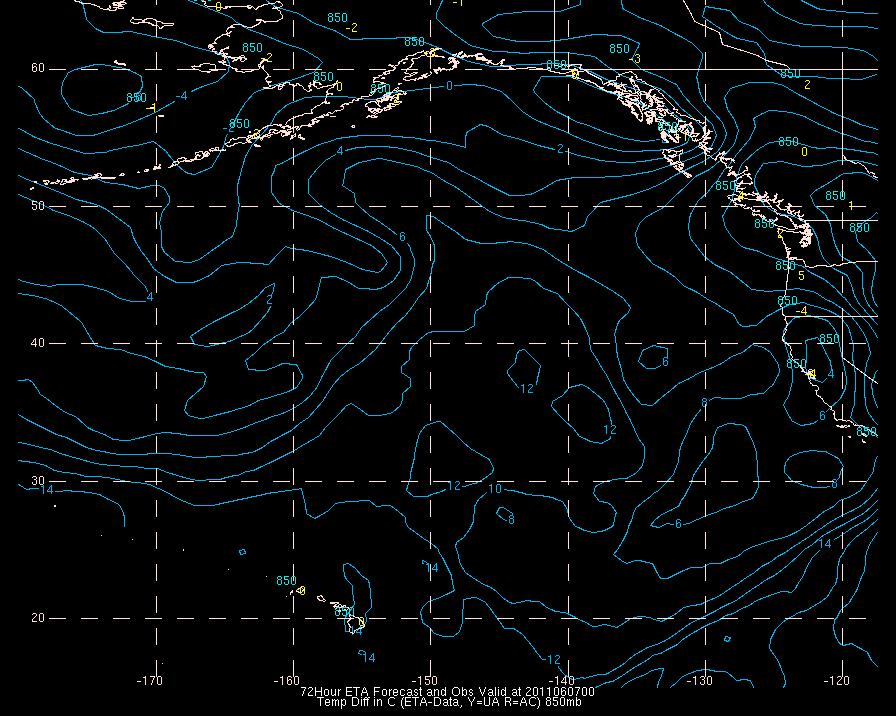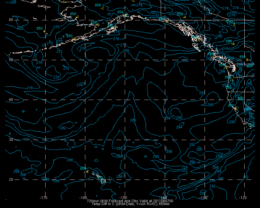 Temperature differences between observations (acars, and/or upper air) and model temps: