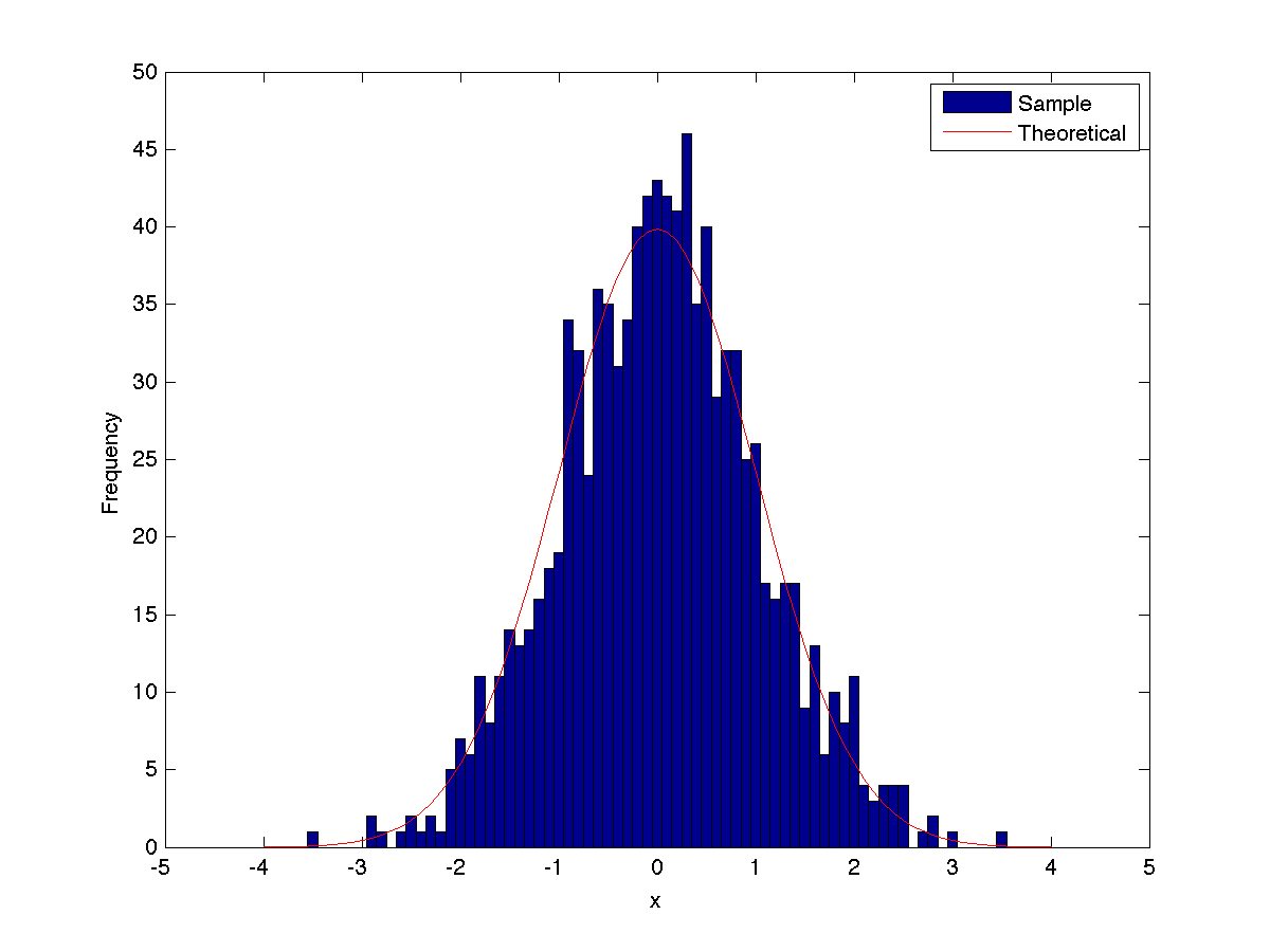1000 samples of unit normal PDF;