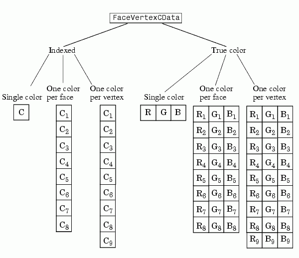 For indexed colors, FaceVertexCData can be:
