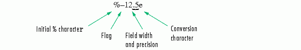 Add one or more of these characters between the % and the conversion character.