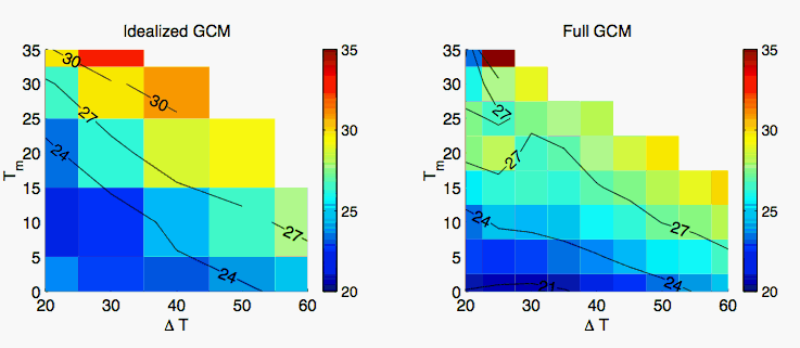 idealized GCM simulations (left) and 69 full GCM simulations (right). All