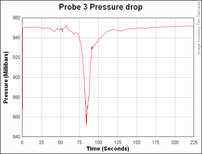 Pressure trace showing the passage of a tornado.