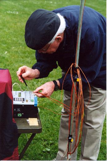 Volunteer Dr. Don Sandstrom hooking mast thermocouples to the