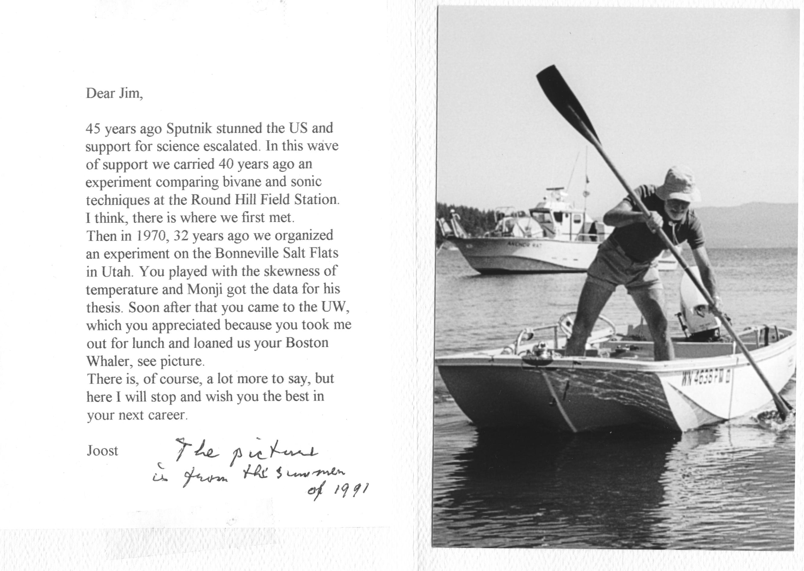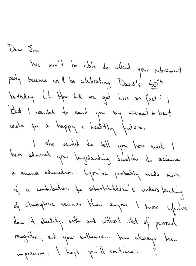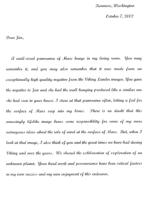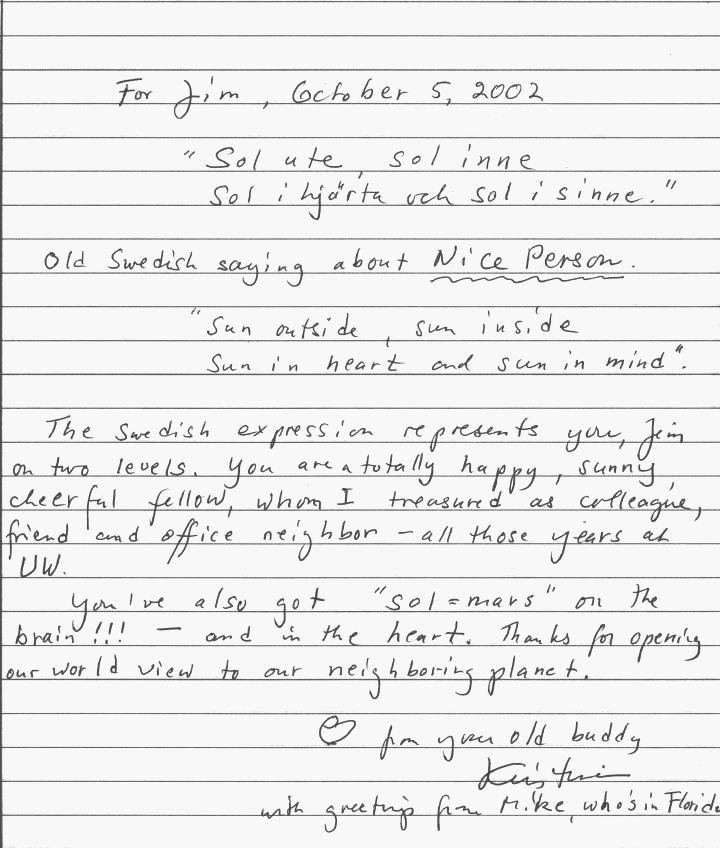 So I have a lot to thank you for. I'm sure there have been many more you have sent on their way too. And of course as I have my own students encountering their first research I try to challenge them yet make them succeed. It's a wonderful gift to pass along. For all the great science you have done, the heroic role you played in the Mars lander, and the discoveries you made, it may very well be your greatest impact is your work with school children. Of course, "retirement" from the U of W just means you now have more time to work on the next lander and the next school kid. Lucky you.