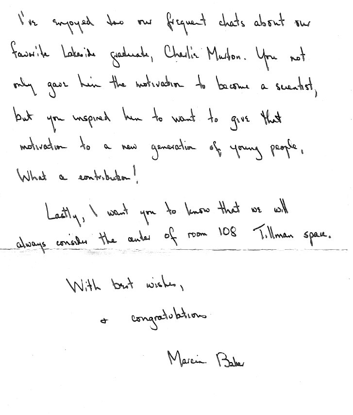 Over the years, our correspondence has been intermittent: I've tended to get in touch with you after each segment of my career, college, grad school, first "job", and other times when one looks back on the arc of ones life. Obviously, in the back of my mind was how in hindsight so many things traced back to my first experiences in science.
