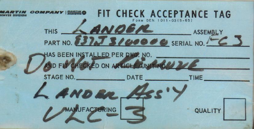This lander body, can be identified as the "Flight" lander body #3 by the "FC3" designation on its tag, by ID numbers, and by notes on body such as "remove before sterilization" at various places. The Viking program included three complete Viking Flight Systems, A, B, and C, the later to be the ``Flight Spare'' system. Two other sets of Lander bodies were built, but these were not ``Flight Quality''. (The Lander in the Smithsonian National Air and Space Museum, Washington, D.C., is the Science Test Bed lander.) Management decided not to complete Flight Lander C, the ``Flight Spare'' to save 20 to $ 40 million, leaving FC3 in this stage of construction and checkout.