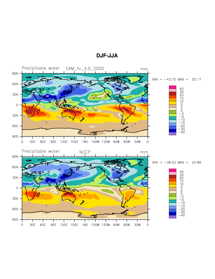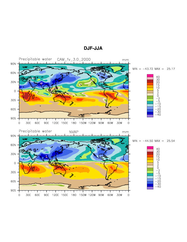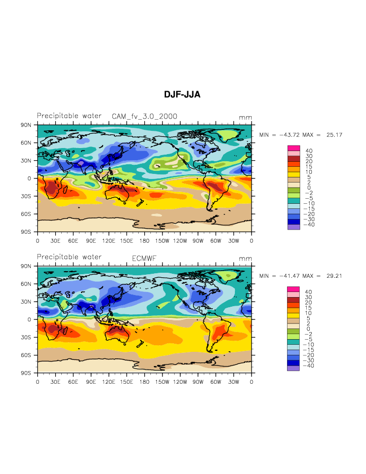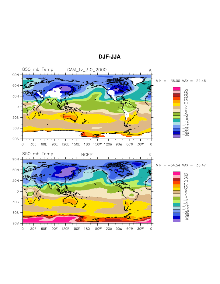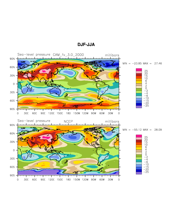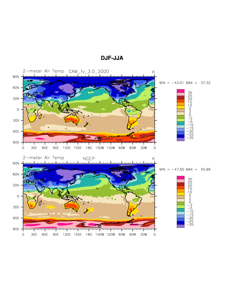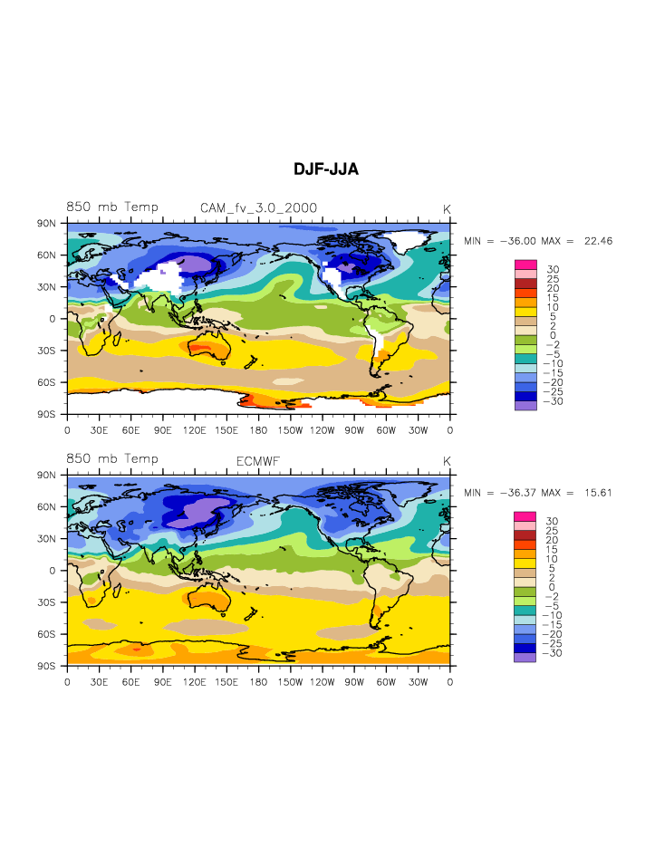 CAM_2000 DIAG Set 9 - Horizontal contour plots of DJF-JJA differences