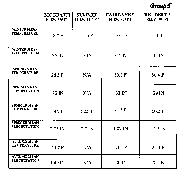 7)Interior Alaska chart of mean temperatures and precipitations at various