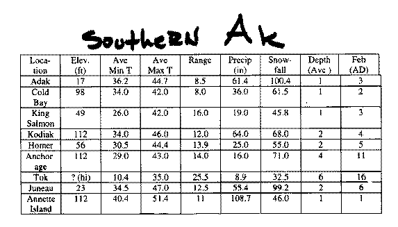 6) Southern Alaska chart of average temp and precipitation. Temp is in