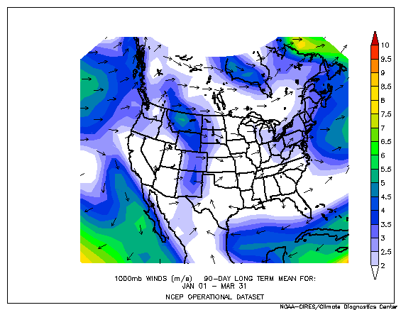 on the East Coast is due to the winds. In the winter, the westerly winds