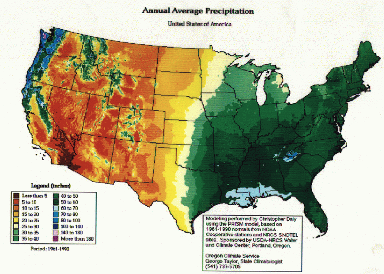 | Mean Annual Precip. | 39.8" | 35.42" | 41.04" | 54.09" | 57.95" | 36.98" |