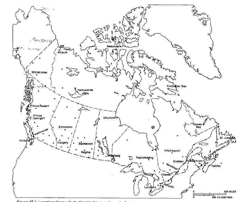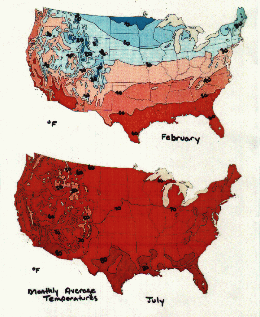 you travel south. The northern most station, Bangor, Maine, the coldest
