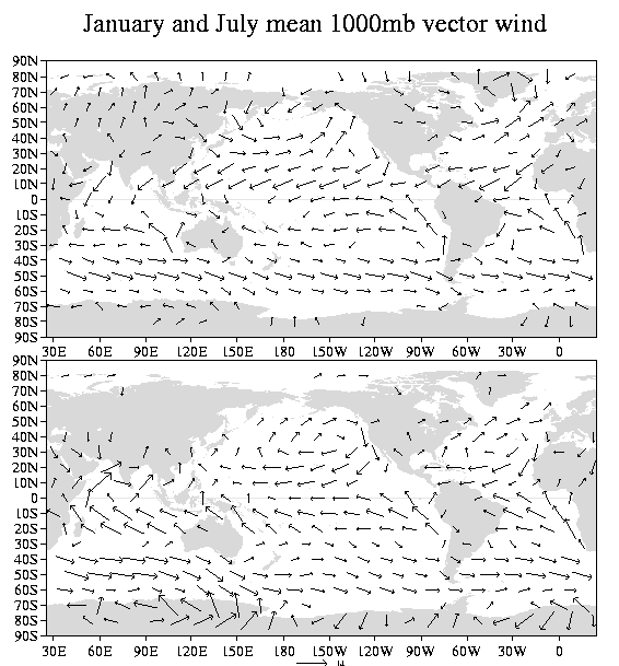 Fig. 1 January (top) and July (bottom) climatological-mean surface