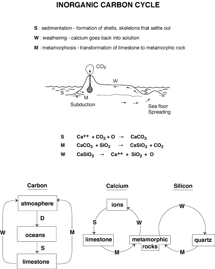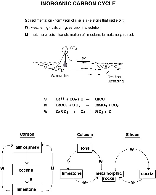 Figure 2. Diagram of the long-term inorganic carbon cycle. Review Questions 1) Name and compare the sizes of the major reservoirs of carbon in the